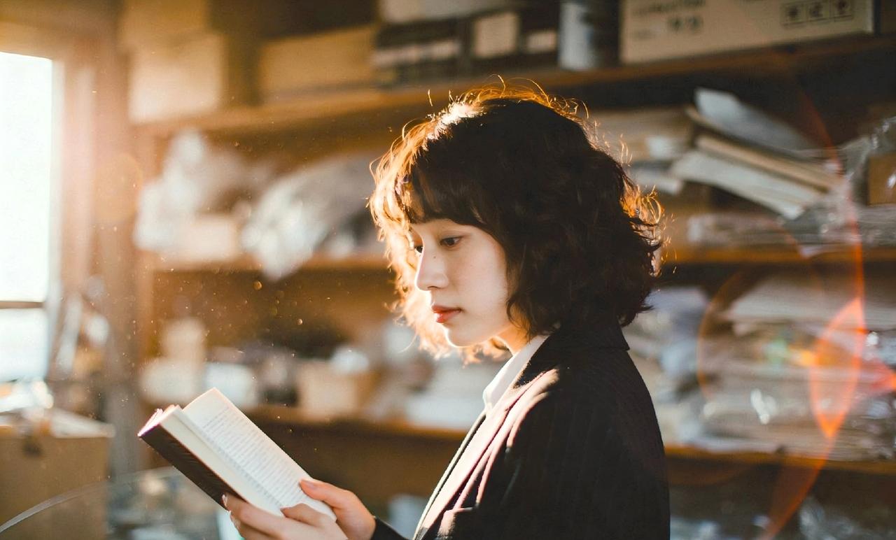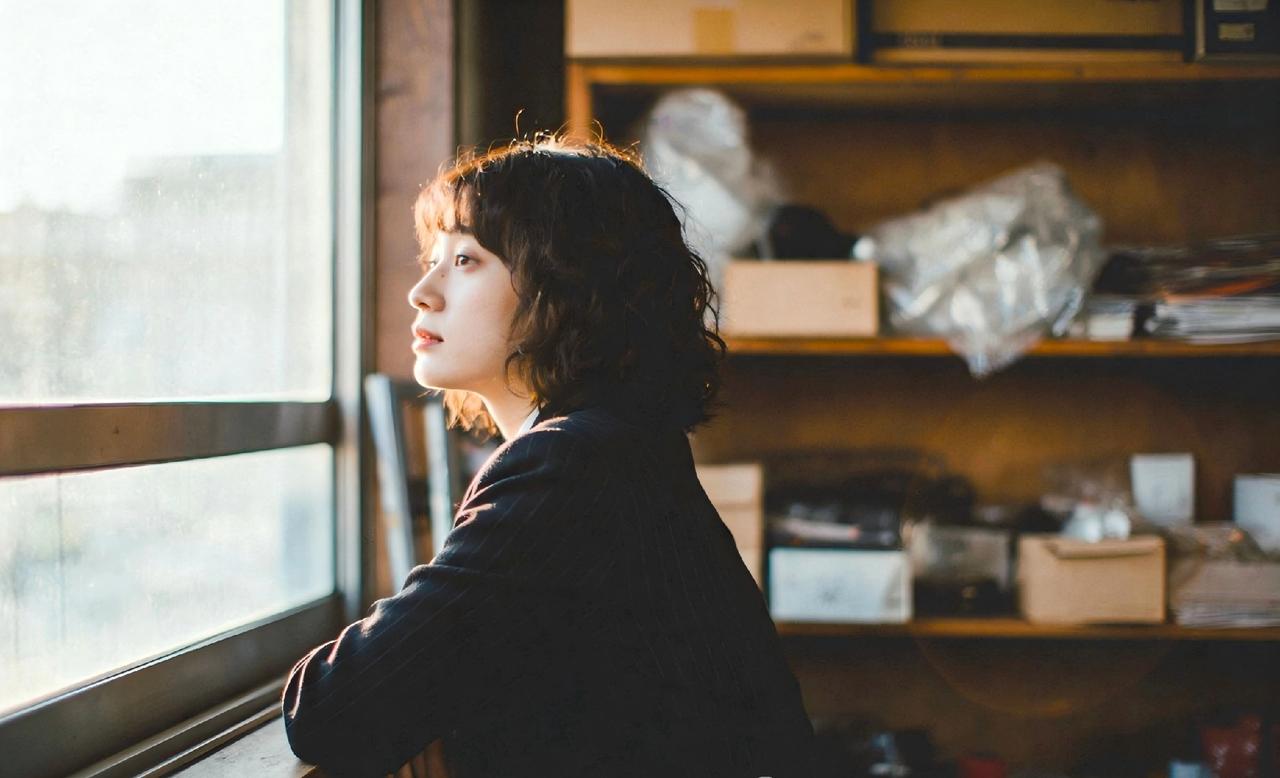 阳光洒进工作室,少女沉思的瞬间。光与影的完美结合,展示出了知性美一张图片证明你在