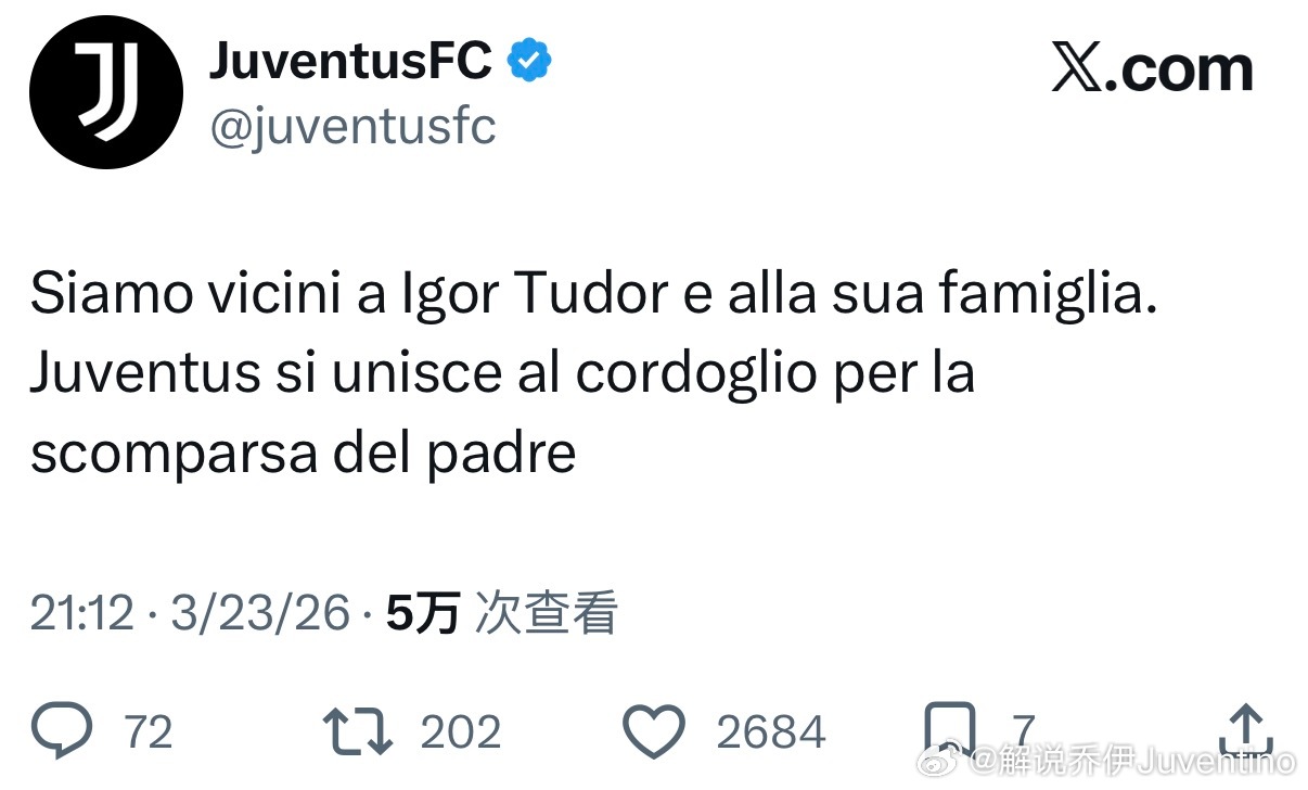 尤文图斯意甲联赛尤文旧将 尤文官方社媒:我们和伊戈尔·图多尔以及他的家人关系密切。尤文图斯也为其父亲的离世表示哀悼。🙏
