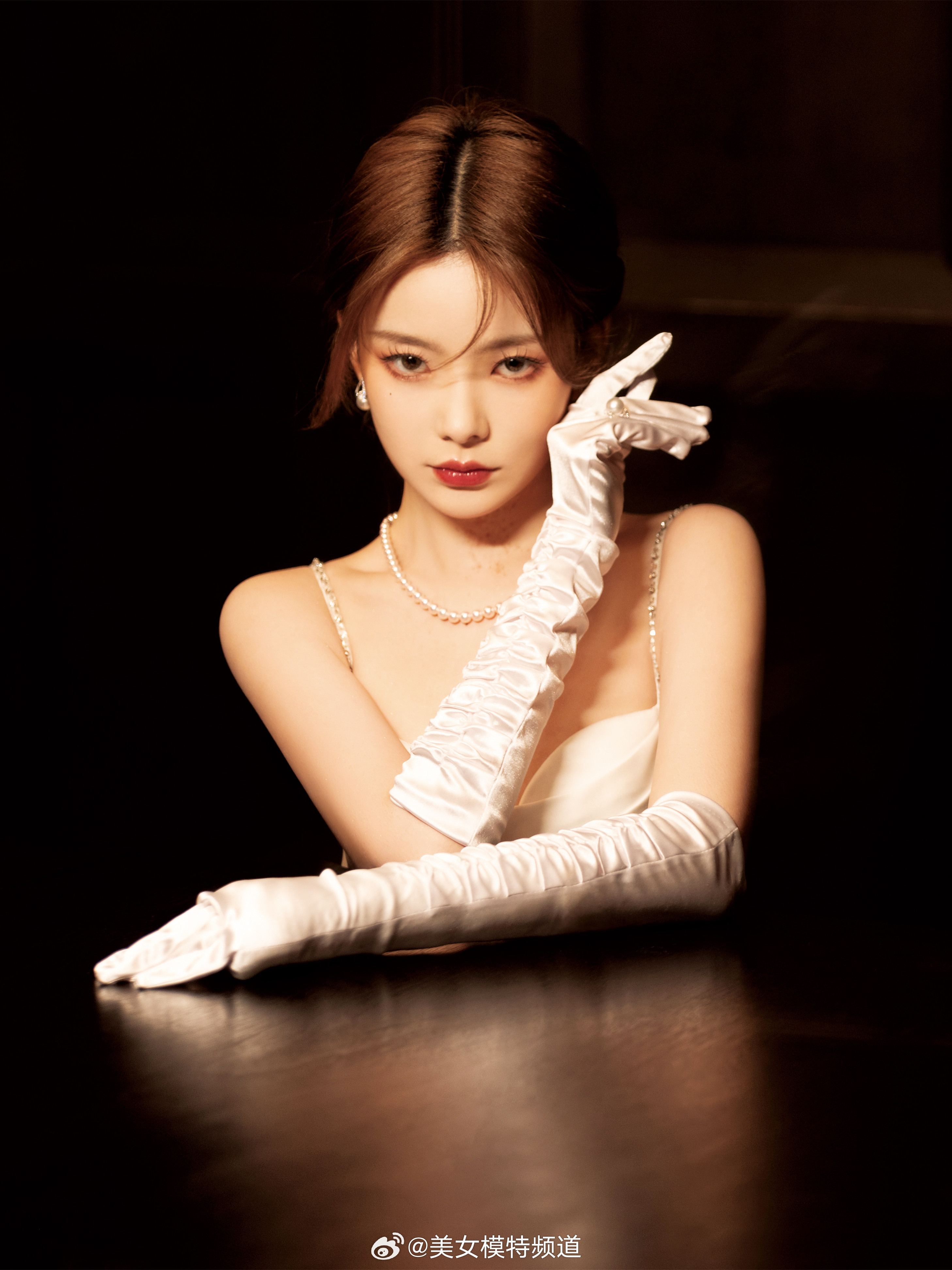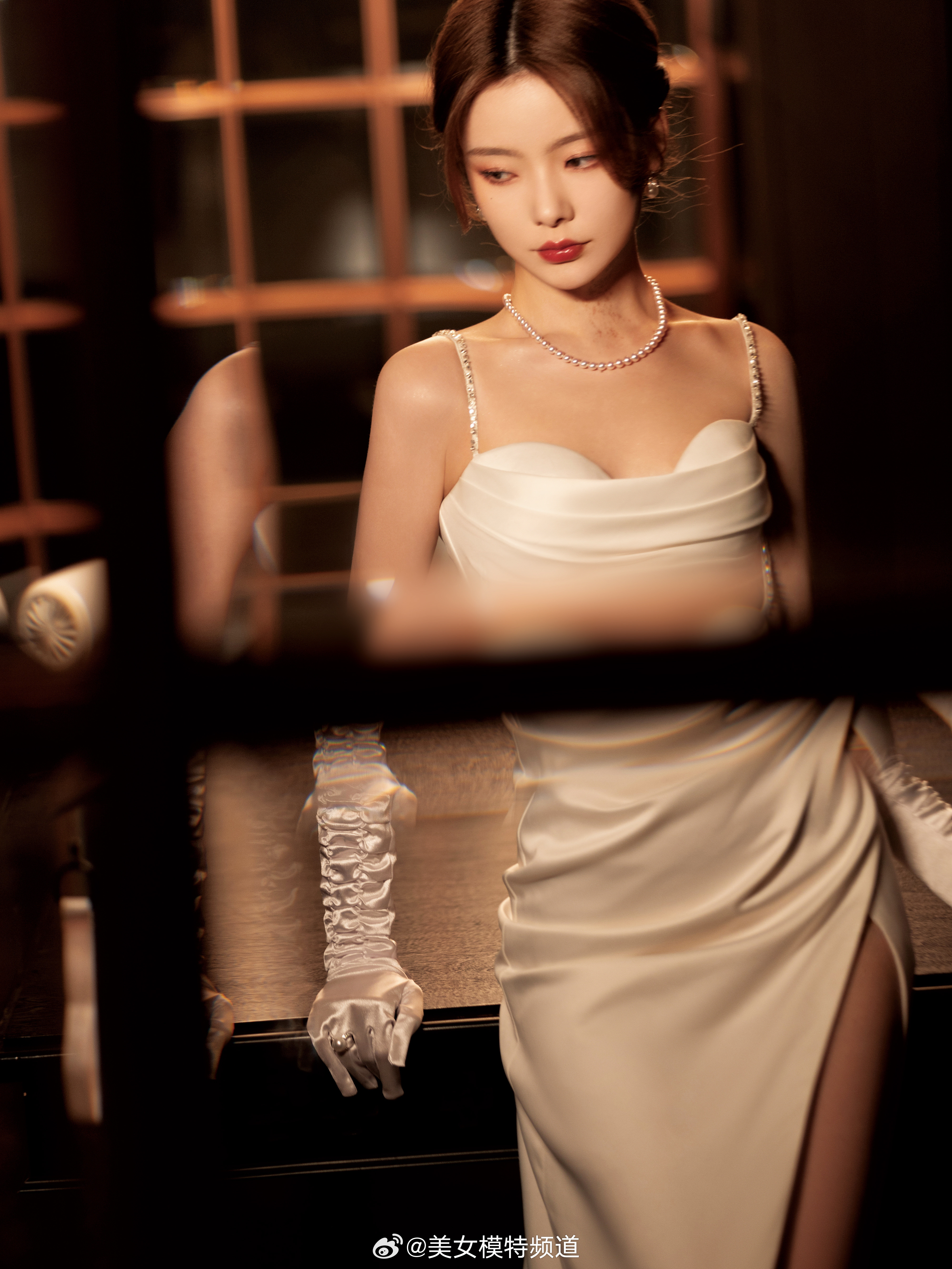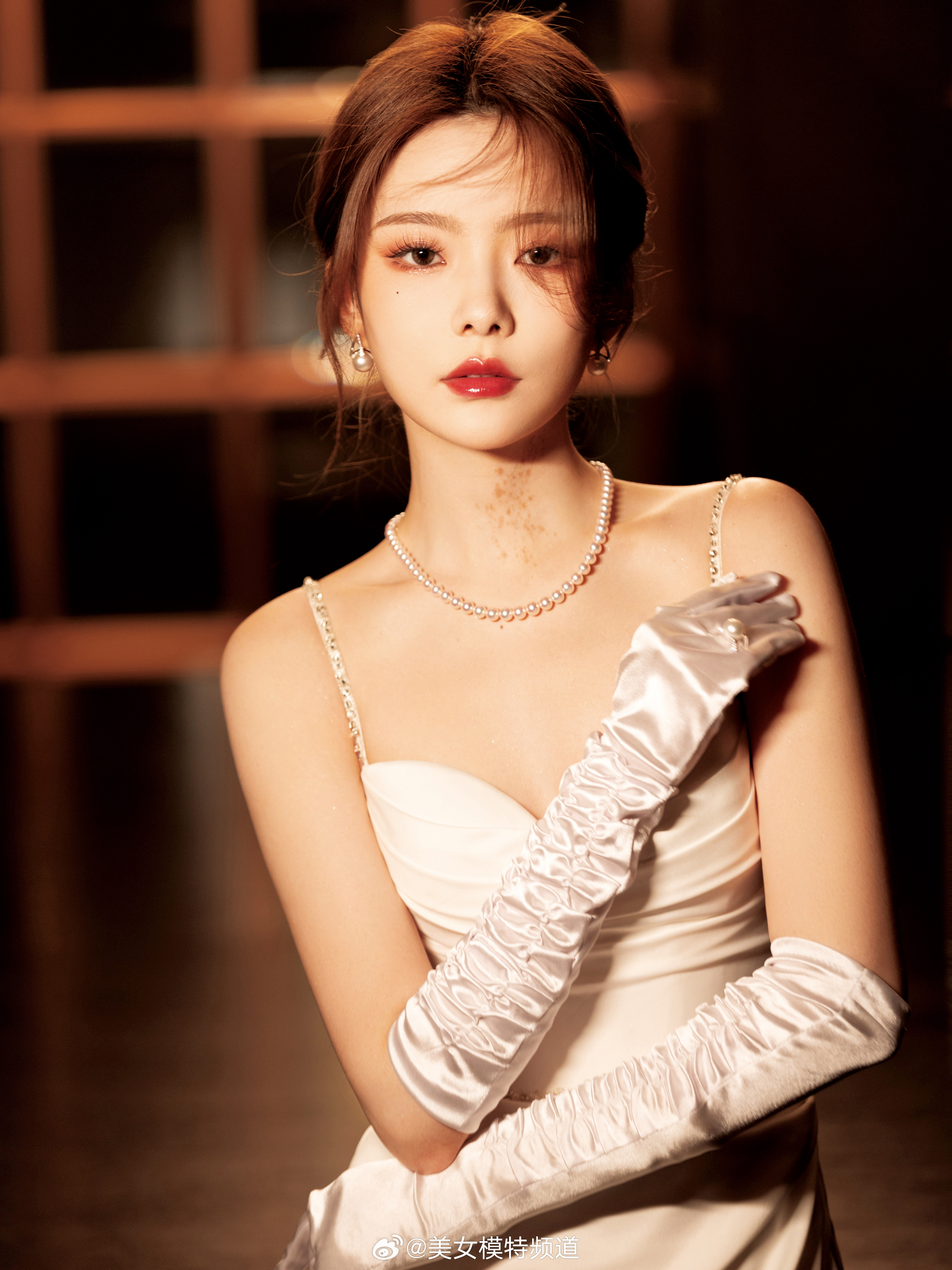 陈卓璇白色绸缎长裙写真大片