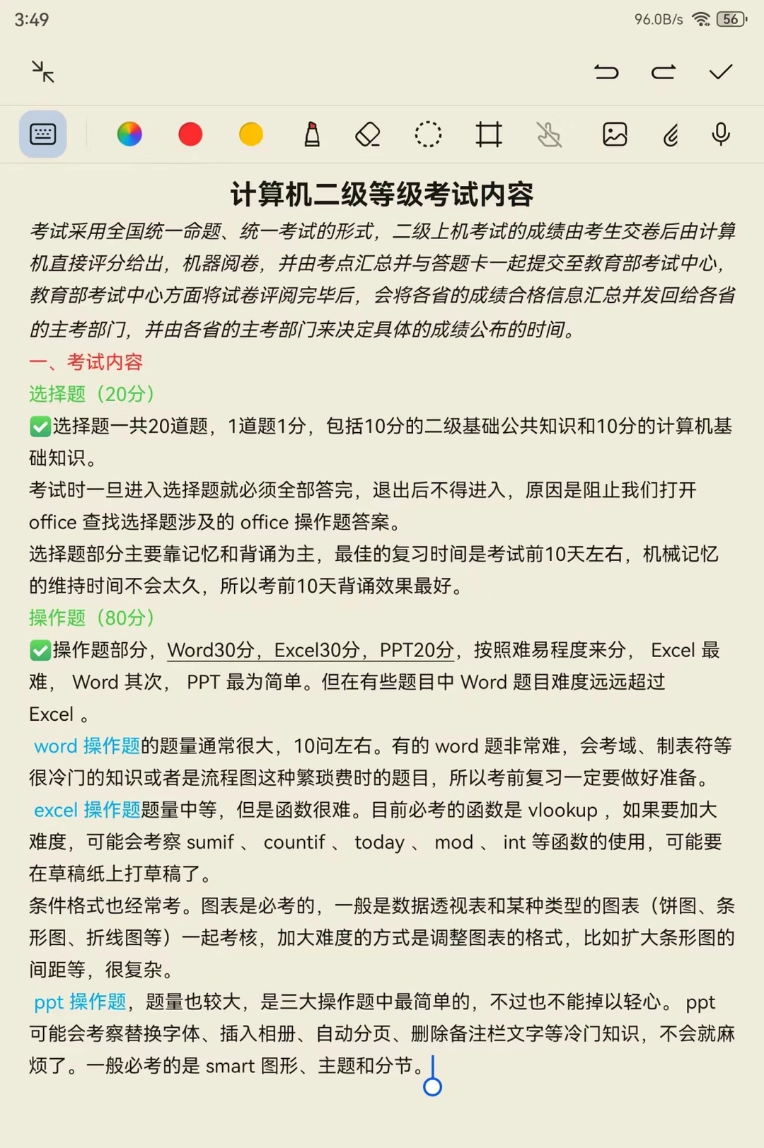 ✅操作题部分,Word30分,Excel30分,PPT20分,按照难易程度来分, Excel 最难, Word 其次, PPT 最为简单。但在有些题目中 Word 题目难度远远超过 Excel 。