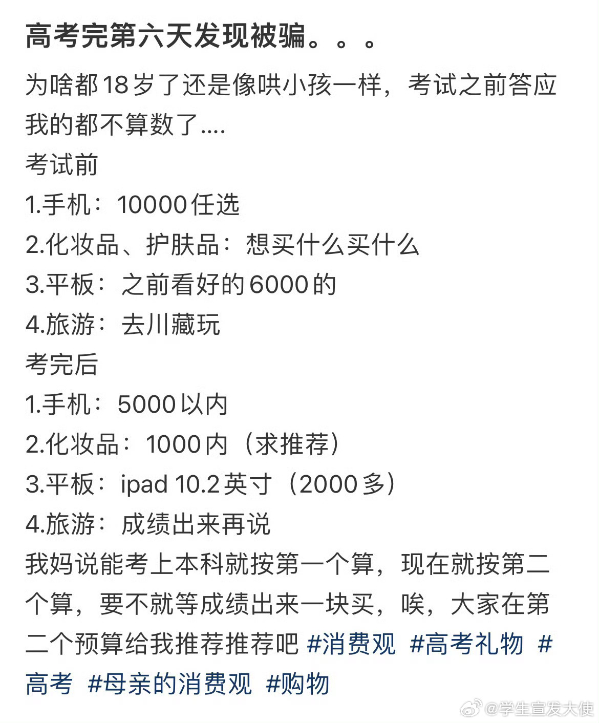 高考完第六天发现被骗。。。