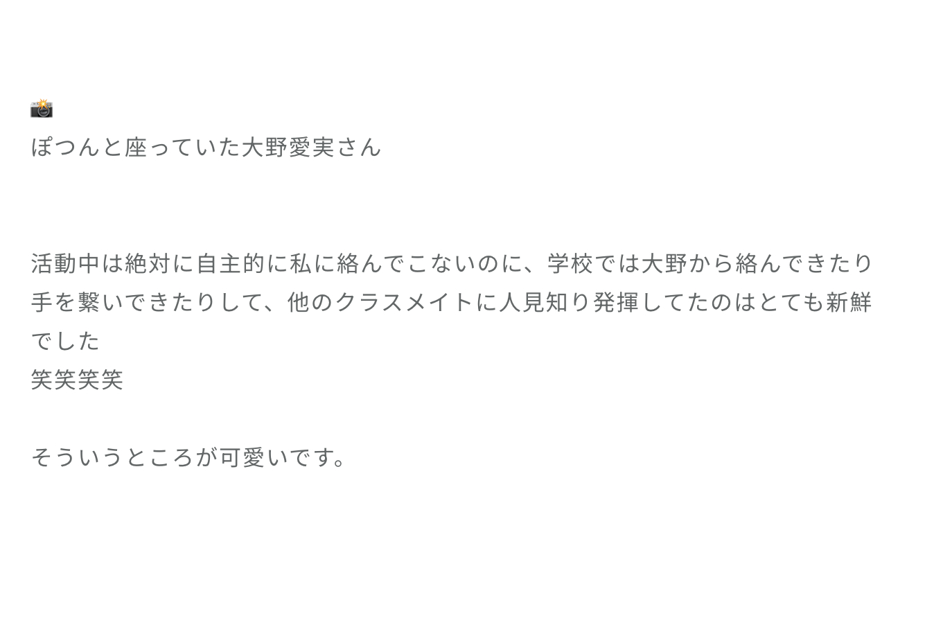 高井俐香「先日、高校を卒業致しました🎓🌸高校生活が終わってしまったということと、今後の人生への期待が、同時に押し寄せてくるような不思議な気持ちになっています。高校2年生までは地元の高校に通っていて、高校3年生でこの学校に転校してきたので、約1年間でしたが楽しい学校生活を送ることができました。思い出に残るのは体育祭!!体育祭楽しかったです⚾️綱引きに参加したな〜私と大野愛実は人見知りが出てしまい、壁際で2人体育座りでたじたじしていたのは、ちょっぴり苦い思い出。。。結局卒業式でも同じようにたじたじしてしまいました、、( . .)人見知りか。。。」