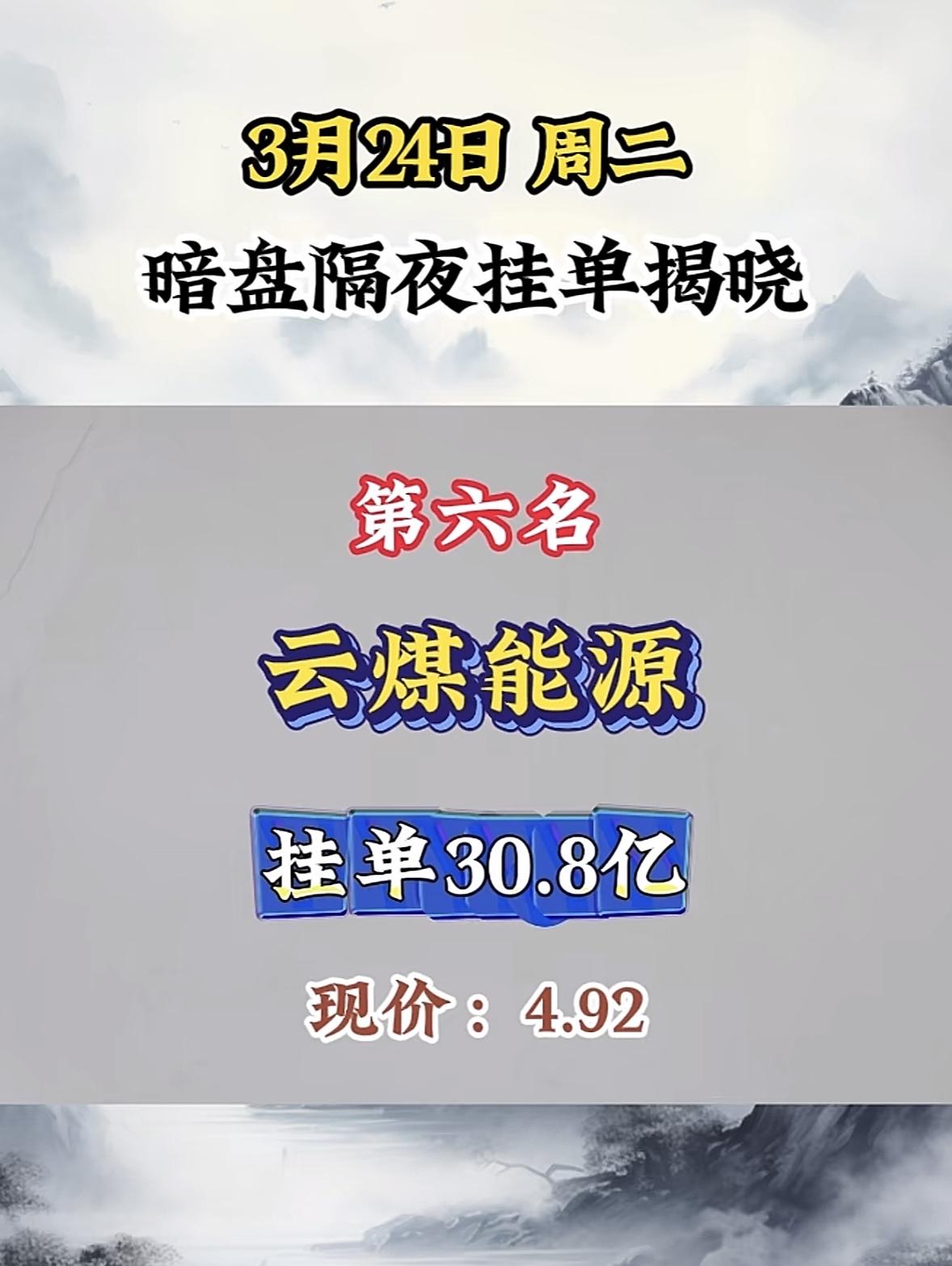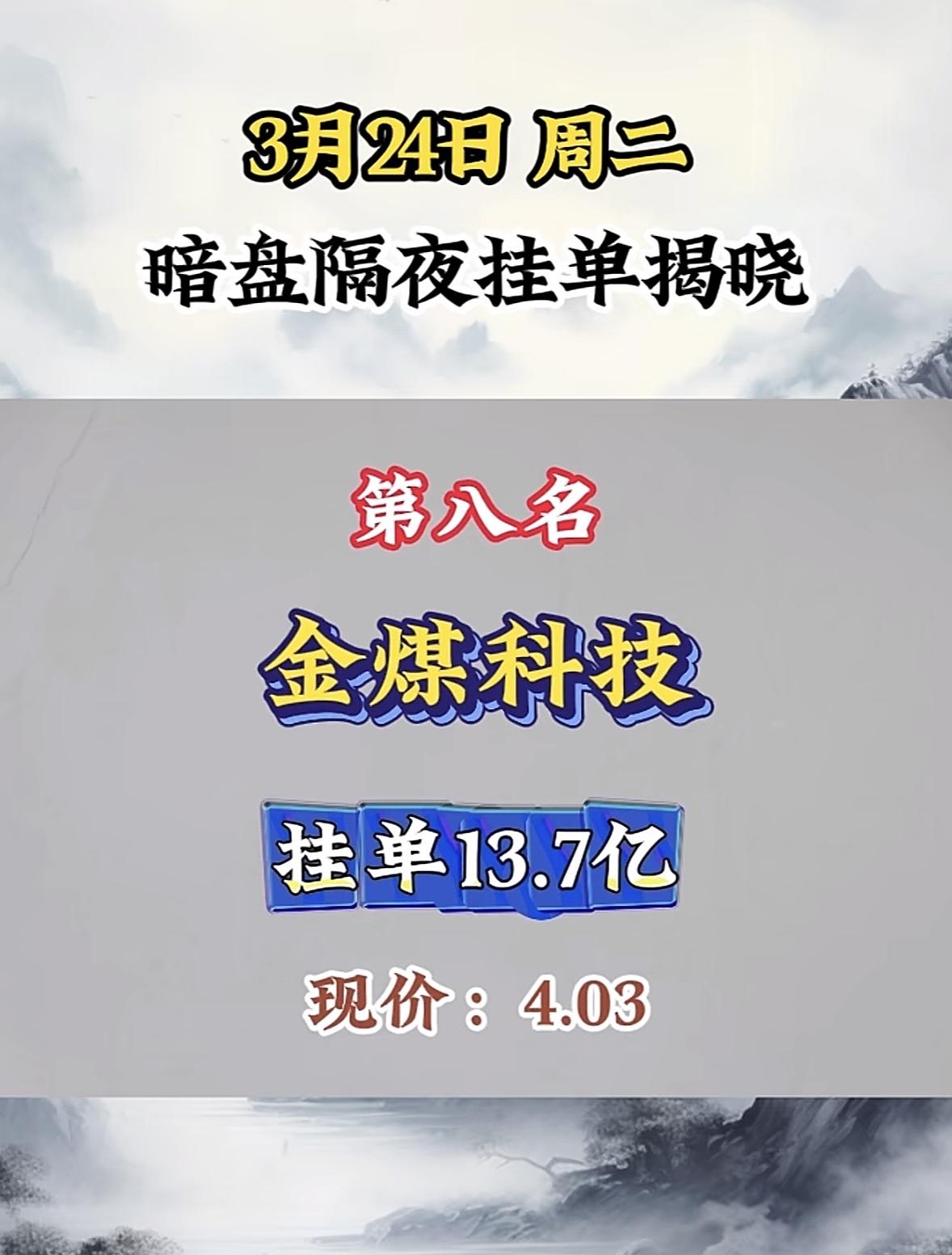 3月24日暗盘隔夜挂单排行榜揭晓 金煤科技这波暗盘隔夜挂单太猛了!现价4.03