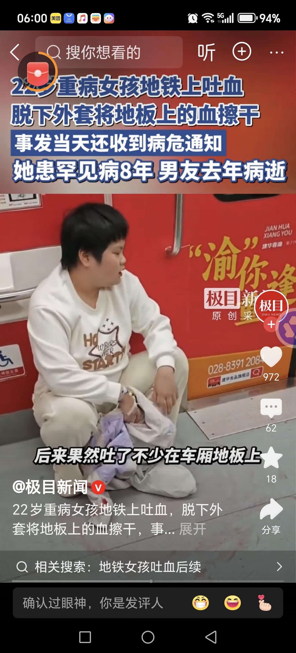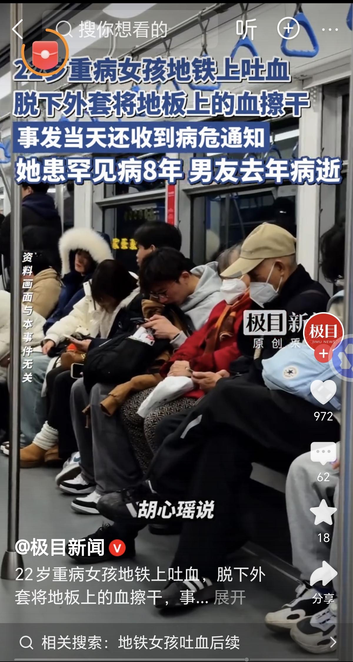 重庆00后女孩地铁吐血,10秒擦净血渍的背后,是与病魔缠斗8年的倔强 重庆地铁1号线上的一个瞬间,让全网为一位00后女孩动容。身体突发不适口吐鲜血,面色惨白的她没有慌乱求助,反而第一时间用衣物拭去地面血渍,生怕给后续乘客带来不便。这位名叫胡心瑶的姑娘,用一个简单的动作,将刻在骨子里的善良展现得淋漓尽致,而她背后与病魔缠斗八年的故事,更让人心疼又敬佩。 2003年出生的胡心瑶,本应拥有肆意张扬的青春,命运却在2017年按下了磨难的开关。这一年,她被确诊IgA血管炎,也就是常说的过敏性紫癜,这种免疫性疾病不仅让她承受身体的痛苦,更开启了她辗转各地的治疗之路。重庆、北京、上海、武汉,一座座城市的医院里,都留下了她与病魔抗争的身影。谁曾想,八年后的2025年3月,病情再度加重,ANCA血管炎的确诊,让本就艰难的求生路,变得更加坎坷。 此次地铁上的突发状况,并非意外。消化道出血的症状已困扰她近一周,3月23日下午,她带着手上的留置针,从石桥铺站乘地铁前往袁家岗的重医附一院,本是为了打针止血,却在途中病情发作,鲜血突然涌出。身处上车门附近的她,第一时间想到的不是自己的病痛,而是下一站即将上车的乘客,仅仅用了10秒,便用衣服将地面血渍擦得干干净净,随后独自在重医附近下车,默默前往医院。 这份刻在骨子里的善良,背后是远超常人的坚韧。被两种血管炎缠身的胡心瑶,从未向命运低头,为了凑齐高昂的药费,她把自己的一天安排得密不透风,用拼尽全力的努力,对抗着无情的病魔。清晨7点,别人还在熟睡时,她已起床服药、吃早餐,随后便坐在屏幕前做网络心理咨询,一分钟仅有五毛钱的收入,她却格外珍惜;下午3点,放下线上的工作,她又要忙着准备食材,出摊售卖水果汁,一直忙到深夜10点才收摊;回到家中,疲惫的身体仍不允许她休息,她还要坚持在网上连载小说,常常熬到凌晨3点才能入睡。 这般连轴转的辛苦,一天也只能挣得三四百元,对于她的药费而言,不过是杯水车薪。入不敷出的日子里,她只能靠着网贷,还有素不相识的爱心人士的捐赠勉力维持。生活给了她满目的荆棘,她却硬生生走出了一路繁花,从未有过一句抱怨,始终用积极的心态面对一切。 命运的考验,从未因她的坚强而停下脚步。2025年8月31日,26岁的前男友肖先生因急性胰腺炎离世,弥留之际,他最惦念的还是胡心瑶,托付朋友将自己工作多年攒下的5万元积蓄交给她,只为帮她实现成立病友之家的心愿。这份跨越生死的惦念,成了胡心瑶前行路上的一束光,她用这笔钱成立了“鹿灵瑶病友之家”,将自己多年的治疗经历分享给更多病友,与大家互帮互助,抱团抵御病魔。 面对全网的点赞与关心,胡心瑶满心感激,轻声回应自己如今状况已好转。她的心中,藏着两个朴素又坚定的梦想:一是早日攒够钱,转往上一级医院接受更好的治疗,让自己的身体慢慢好起来;二是用心经营好病友之家,成为更多病友的依靠,让他们在与病魔抗争的路上,不再孤单。 这世间最动人的力量,莫过于身处黑暗,却依旧心向光明。胡心瑶用八年的坚守,告诉我们何为坚强;用地铁上的十秒,诠释了何为善良。她的故事,不仅让我们看到了血管炎患者背后的不易——长期的治疗、沉重的经济压力、难以言说的心理煎熬,更让我们明白,纵使生活万般艰难,只要心怀善意、永不言弃,便终能遇见温暖与希望。愿这个善良又坚韧的姑娘,能被命运温柔以待,早日康复,活成自己想要的模样,也愿她的病友之家,能汇聚更多温暖,成为更多人的避风港。