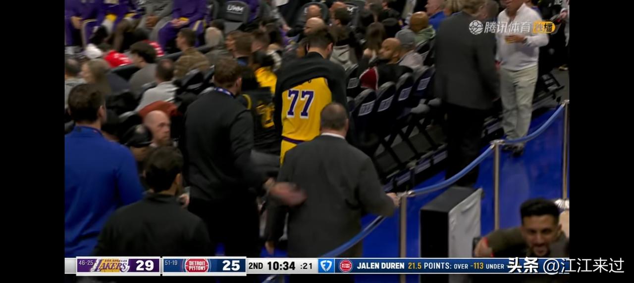 东契奇开局就被撞返回更衣室!詹姆斯上半场竟然一分未得?湖人常规赛就超负荷用东契奇到底对不对?五连客对于湖人体能压力体现的非常明显! 湖人半场52比65落后活塞!东契奇半场得到全场最高17分!而詹姆斯5中0一分未得,并且场上效率值全队最低-14! 面对以防守见长的活塞队,虽然球队当家球星坎宁安无法上场,但活塞队还是展现出他们东部第一的强势一面,詹金斯得到15分!