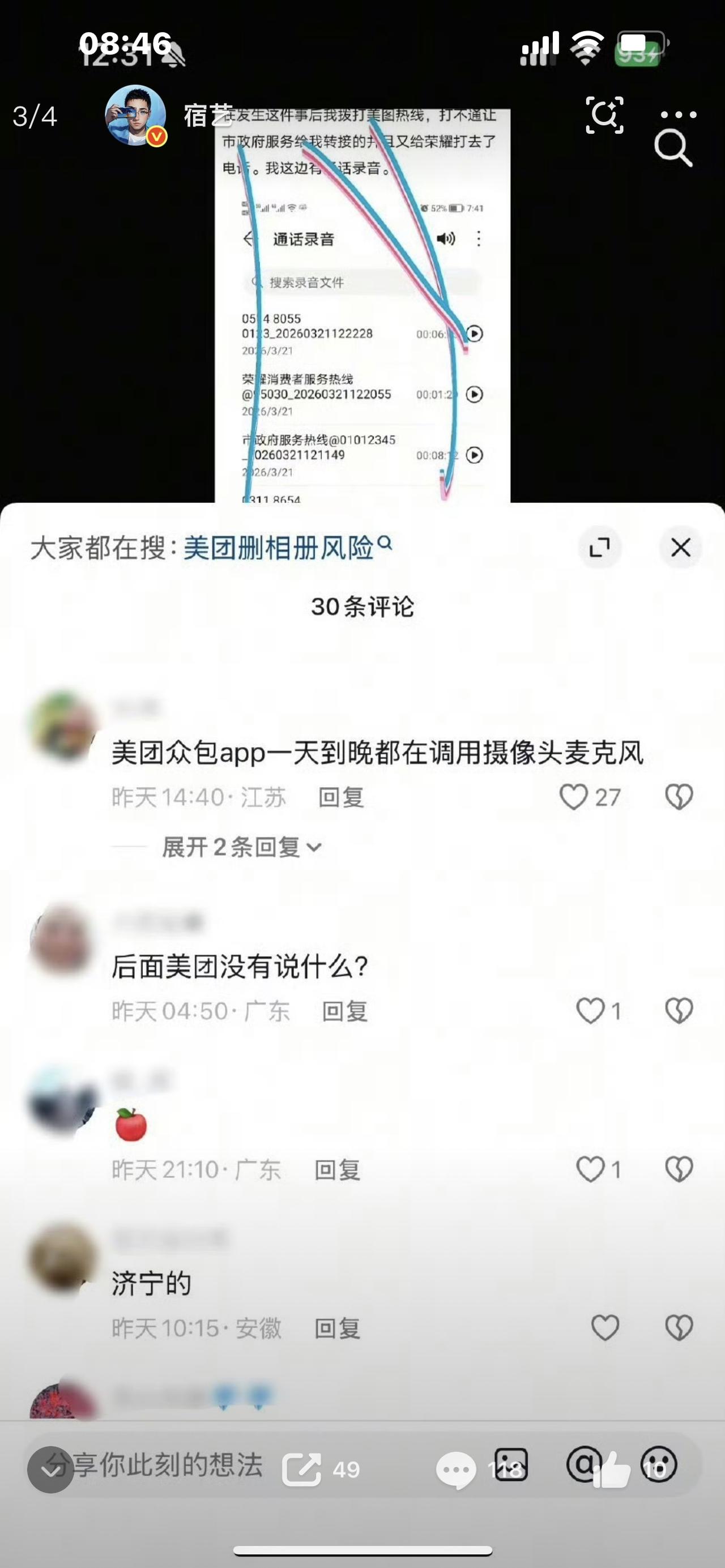 突发!美团偷偷删用户照片!无数人相册被清空,你的手机正在被监控! 最近全网炸锅!无数安卓用户突然收到手机警告:检测到美团正在删除你的照片和视频! 很多人还以为是系统误报,点开相册直接傻眼——几百张、几千张照片瞬间消失,有宝宝成长记录、旅行回忆、工作资料,甚至有人6年珍藏的504G文件,永久丢失、再也找不回! 更吓人的是,就算从回收站恢复,转头又被美团二次清空,文件直接损坏乱码,华为、小米、荣耀、OPPO等主流安卓机,全中招! 一开始大家以为是个例,没想到短短几天,上万受害者抱团发声,这根本不是偶然,而是大范围异常操作! 面对舆论沸腾,美团回应轻飘飘一句:第三方插件冲突、缓存清理异常。 这个解释,网友根本不买账! 一个点外卖、买团购的软件,凭什么越过用户授权,私自触碰、删除手机本地文件?这不是bug,这是越界、是侵权! 我们每天把隐私、照片、通讯录、定位交给APP,不是让它们随意操控我们的手机!今天能删照片,明天会不会偷信息、传数据?细思极恐! 多少人的照片,是花多少钱都买不回的回忆;多少人的资料,关系到工作和生活。一句“技术异常”,就想抹平对用户造成的伤害? 手机是我们的私人物品,不是APP的“后花园”!权限不能滥用,隐私不能践踏! 支持严查、支持道歉赔偿的,点赞转发,让更多人警惕!保护自己的隐私,从关掉不必要的APP权限开始! 美团经营数据 美团跑单记录 美团退款事件 美团店内违规 美团商家处罚 美团偷拍