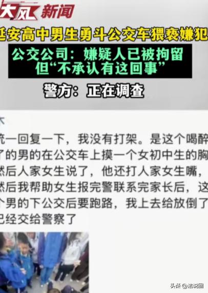 “干得漂亮!”陕西延安,一高中男生坐公交,看到一醉汉摸一女初中生的胸,女生骂醉汉,醉汉还打女生的嘴,男生挺身而出,把醉汉和女生隔开,让司机别开门放走醉汉,他先是打了110,后又联系了女生家长,不料,醉汉到站后想下车逃跑,男生把醉汉扑倒,当场制服,可醉汉被拘留后,竟然做出一件让人惊掉下巴的事。 车厢里人不算多,有人低头刷手机,有人倚着窗打盹,还有几个学生背着书包,神情疲惫。 车厢后排,一个穿着校服的初中女生正站在扶手旁,显得有些局促。她身旁不远处,一个满身酒气的中年男人东倒西歪,站都站不稳。 起初,大家只是皱了皱眉,刻意与他拉开距离——这种喝多的人,谁都不愿意招惹。 可下一秒,事情突然变了味。 那醉汉借着车子的晃动,身体故意往女生身上靠,手竟直接伸向了女生的胸部。动作隐蔽却又肆无忌惮。女生明显愣了一下,随即猛地后退一步,脸一下子涨红。 “你干嘛!不要脸!”她声音不大,却带着明显的颤抖和愤怒。 这一声骂,像是撕开了空气里的某种遮羞布。 醉汉被骂后,不但没有收敛,反而恼羞成怒。他抬手就是一巴掌,直接打在女生脸上,嘴里还骂骂咧咧:“小丫头片子,骂谁呢!” 这一巴掌,让车厢瞬间安静下来。 有人抬头,有人惊愕,但更多人只是愣住——那种“该不该管”的犹豫,在空气里弥漫。 就在这时,一个穿着校服的高中男生站了出来。 他本来坐在中间位置,刚才的一切他看得清清楚楚。几乎没有犹豫,他几步上前,一把挡在女生和醉汉之间,把两人隔开。 “你别动她!”男生声音不大,却很坚定。 醉汉眯着眼,酒气熏天,指着男生骂:“你谁啊?多管闲事!” 男生没有退,他一边护着女生往后退,一边冲司机喊:“师傅,先别开门,这人刚才打人还猥亵!” 司机明显愣了一下,但看到车内气氛不对,还是踩住了刹车,没有开门。 男生迅速掏出手机,直接拨打了110。 电话接通,他语速很快,但条理清晰,把事情经过说得明明白白。随后,他又让女生联系家长,一边安抚她:“别怕,有监控,有我们在。” 车厢里,气氛逐渐发生了变化。 刚才还沉默的乘客,有人开始小声议论,有人干脆站出来:“我看见了,是他先动手的。”“对,我也能作证。” 醉汉见情况不对,眼神开始飘忽。他晃了晃身体,突然往车门方向挤:“我要下车!” 男生一看不对劲,立刻意识到——这人想跑。 就在车门即将打开的一瞬间,男生一个箭步冲上去,直接将醉汉扑倒在地。两人在车厢地面扭打了一下,但醉汉本就站不稳,加上酒劲,根本不是对手,很快就被男生死死按住。 “别让他跑!”有人在旁边喊。 司机这时也反应过来,干脆关紧车门,等警察来处理。 几分钟后,警察赶到现场,将醉汉带走。女生的家长也匆匆赶来,看到女儿脸上的红印,气得直掉眼泪,一边道谢,一边拉着男生的手说:“要不是你,后果不敢想……” 事情到这里,本该有个简单明了的结局。 可谁也没想到,后面却来了一个“反转”。 醉汉被带到派出所后,酒醒了不少,态度却来了个180度大转弯。他开始否认一切。 “我没猥亵她,是车晃,我站不稳,不小心碰到的。” “她先骂我,我才打她的。” “那个男生还把我扑倒,我受伤了,我要他赔医药费!” 这一番说辞,不仅让办案民警皱眉,也让在场的人目瞪口呆。 可他显然低估了现实。 公交车上的监控,把整个过程拍得清清楚楚:手是怎么伸过去的,女生是怎么躲开的,巴掌是怎么落下的,甚至连他那一脸醉态和恶意,都一览无余。 更不用说,还有多名乘客主动站出来作证。 事实面前,他的辩解显得苍白又可笑。 但事情传到网上后,舆论却迅速发酵。 网友们一边愤怒于醉汉的无耻,一边为那个高中男生点赞: “这才是该有的样子!” “关键时刻敢站出来,比什么都重要。” “要是人人都像他,社会会好很多。” 也有人表达了更现实的担忧: “幸好有监控,不然这种反咬一口真的麻烦。” “见义勇为容易,善后才难。”