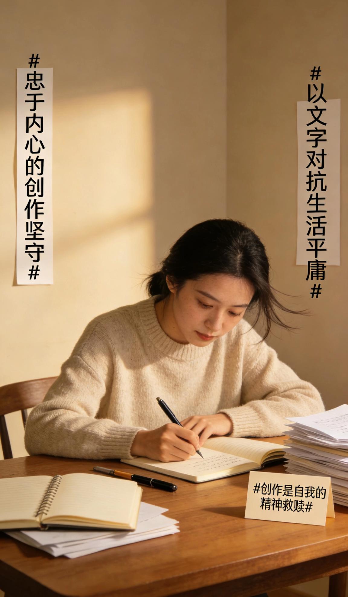 你坚持创作的原因是什么我坚持创作,从不是为了追逐流量与外界赞誉,而是想用文字对抗生活的麻木与浮躁。它是我与灵魂对话的出口,把日常里的细碎感悟、心底的温柔与遗憾、对世界的点滴思考都妥帖收藏,让飘忽的思绪有了安稳落点。创作让我在平凡日子里保持清醒与热忱,即便无人关注、无人喝彩,也能在文字里构筑独属于自己的精神世界,收获内心的丰盈与安宁。这份无关功利的热爱,便是我一路坚持的全部意义。 忠于内心的创作坚守 以文字对抗生活平庸 创作是自我的精神救赎
