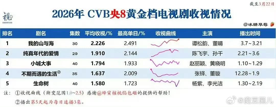 离谱了 谭松韵演技居然也被黑了,不过她最近被全平台发黑通稿是有原因的。 她主演的大女主剧《我的山与海》又成了收视年冠了,一个没有后台没有“干爹”的个体户演员谭松韵好多部作品都收视率第一,这实绩和扛剧能力还有路人缘别人不眼红那是不可能,只能拼命下黑通稿了。 实话说她的路人缘在90花里算是很好的,圆圆脸原生脸演技又自然,尤其特别讨长辈们喜欢,所以上星收视率高很正常啊。