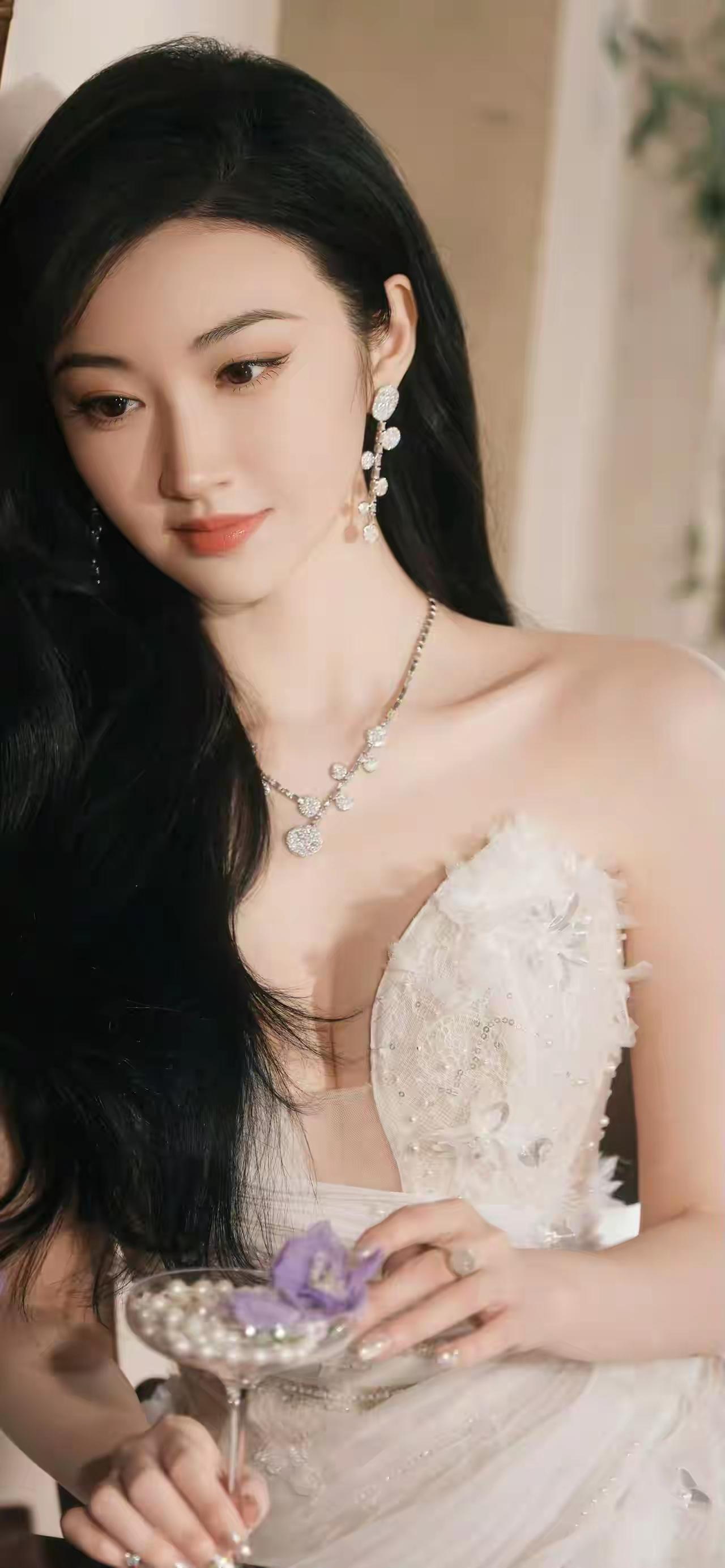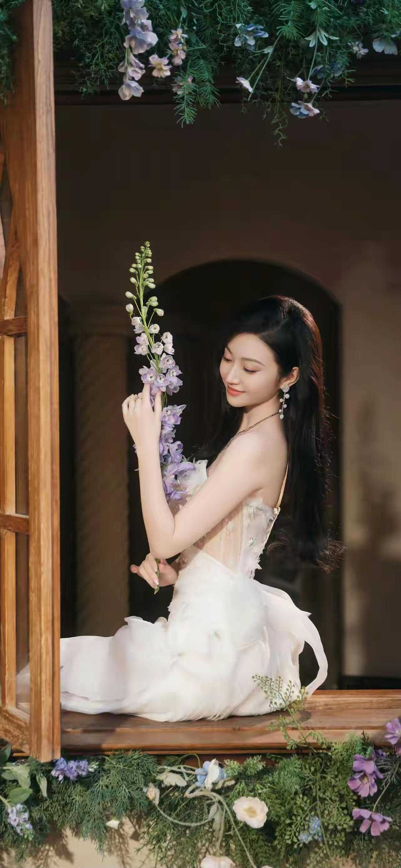 玉人倚栏,轻抚紫花。