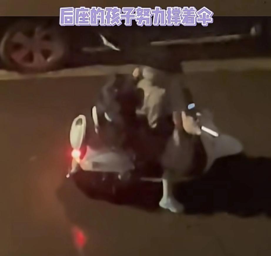 刷到条视频,看完真的破防了!!! 大雨夜,妈妈骑着电动车载着孩子,孩子在后面努