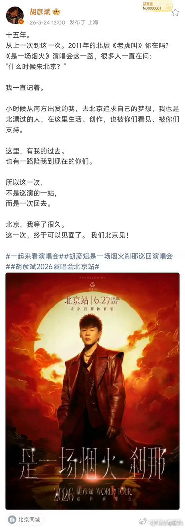 胡彦斌上次北京个唱还是15年前胡彦斌上次北京个唱还是201115年前的遗憾终于要补上!胡彦斌北京个唱重启,从耳机到现场,我们终于能和15年前的自己在歌声里重逢