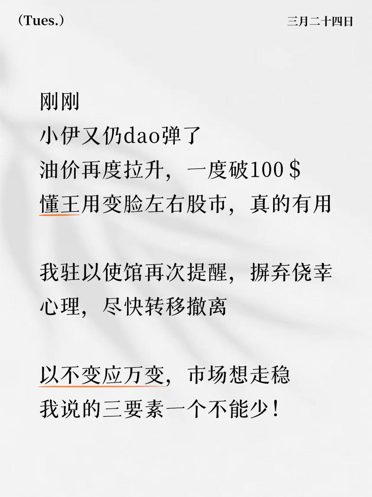 以不变应万变!人得学会自救。局势变化
