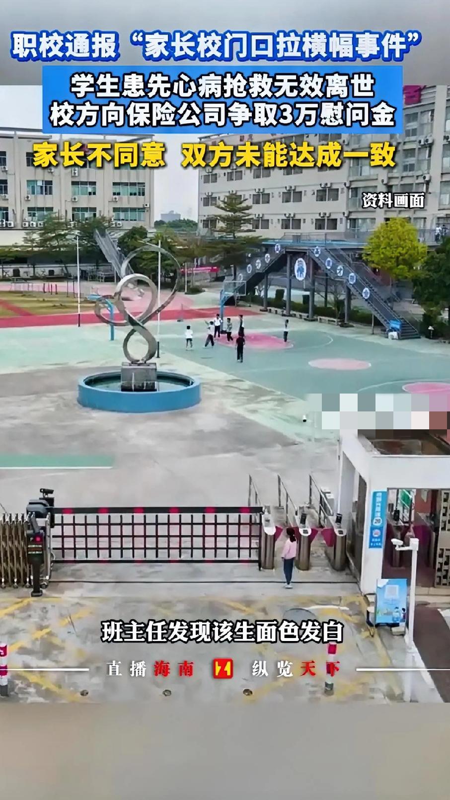 学校只给3万?珠海家长校门口拉横幅讨说法,谣言背后更让人揪心🔥 到底是学校冷漠,还是家长过激?珠海这起闹得满城风雨的校园事件,撕开了最现实的一面。 3月23日,珠海斗门新盈中等职业学校发布通报,正式回应家长拉横幅事件,直接辟谣“学生被欺凌跳楼”的不实消息,可真相曝光后,争议反而更大了。 这名24级学生患有先天性心脏病,入学时家长就提交了病历,学校也未安排其参加剧烈运动。 去年6月,班主任发现孩子脸色苍白让其休息,孩子坚持上课,次日突发疾病送医,最终抢救无效离世。 悲剧发生后,保险公司以既往病史为由拒赔,家长希望学校承担责任,可校方最终只争取到3万元慰问金,家属无法接受。 今年3月20日,家长无奈到校门口拉横幅维权,校方报警调解,依旧没能达成一致,矛盾彻底激化。 学校澄清:该生在校表现良好,与同学相处和睦,不存在霸凌、被逼跳楼的情况,同时将对造谣者追责。 校方也公布了正规沟通渠道,呼吁通过合法途径解决问题,可至今双方仍未谈拢。 一条年轻生命逝去,本就让人痛心,可后续的赔偿纠纷,却让事情变得无比复杂。 有人说学校仁至义尽,也有人说3万慰问金太寒心,你更站哪一边?