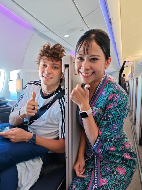 梅奔双雄安东内尼和拉塞尔是坐马航商务舱去墨尔本参加今年F1揭幕战! 由于此前表现亮眼,所以外观神情看起来也是挺轻松的,与空姐合影也是来者不拒!此次两人乘坐的是同一航班,也是我们熟知的马航!之前消息还传出是私人飞机接送,看来最终还是大客机保险。【来自懂车帝车友圈】