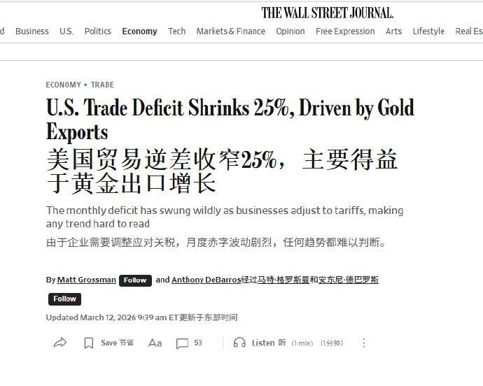 金价暴跌的原因找到了!美国对华出口大批黄金,难怪贸易逆差迅速收窄! 3月21日,《欧亚时报》刊发报道,作者萨哈娜·基兰指出,美国财政部近期进行了创纪录规模的黄金回购操作,并以此作为支付手段向中国结算部分贸易款项。其实早在3月12日,《华尔街日报》便已撰文分析,美国贸易逆差在当月大幅收窄25%,其核心驱动力并非传统商品出口的回暖,而是黄金出口量的激增。 有人说这就是市场正常回调,也有人猜是避险情绪凉了,其实说白了金价暴跌这事,和美国卖黄金的操作脱不了干系; 而美国近期贸易亏空变少,也不是经济真的回暖了纯属靠卖黄金临时撑起来的表面风光。 这些年大家也能看出来美国和中国做买卖一直是亏空状态,说白了就是从中国买的多、卖的少,日积月累下来欠的钱可不少。 以前美元是全球都认的硬货,美国还能靠印美元、用美元结账蒙混过关,但现在美元越来越不靠谱越来越多国家不买账了,更愿意用黄金这种硬货做买卖结账,美国没办法只能多卖黄金。 美国近期贸易亏空少了很多看着是经济要好转的样子,其实压根不是这么回事。 这波变化的核心原因之一就是黄金卖得特别多,临时填上了贸易亏空的窟窿。 美国这波操作短期看确实能把贸易数据做漂亮,还能稍微稳住大家的心态,但长期来看隐患可不小。 金价暴跌不是单一原因造成的,美国央行一直维持高利息、美元变值钱、赚了钱的资金撤场,这些都是核心原因。 而美国大批量卖黄金让市场上的黄金变多了、买的人没那么多直接让金价跌得更狠,咱们普通买黄金的人手里的黄金自然就不值钱了。 划重点:真正的贸易亏空好转,得靠自己升级自家产业,靠有竞争力的商品出口,而不是靠变卖黄金这种压箱底的家底。 黄金可是一个国家的“硬家底”,美国为了让经济数据好看,特意多卖黄金短期数据是好看了,但也在不断耗自己的家底,长期下来不仅美元会更不靠谱,还会给全球花钱做生意的市场添乱。 可同样是用黄金做买卖结账,美国和俄罗斯完全是两码事。 俄罗斯因为被西方制裁,存在国外的钱被冻住了,而它本身就是全球主要的黄金生产国,没办法只能把黄金卖给中国,换人民币来和其他国家做买卖、补国家花钱的窟窿。 这些年俄罗斯卖给中国的黄金涨得特别快,这是双方都受益的事,而且俄罗斯卖黄金是慢慢来的,没一下子猛抛也没对全球金价造成大冲击。 但美国不一样它是主动多卖黄金,目的就是短期把贸易数据做漂亮,这种急功近利的操作不仅让金价波动更厉害,还把自己经济上的短板暴露得明明白白。 这次金价下跌的幅度是真不小,国际上的现货黄金从3月初的高位直接跳水,国内黄金主力合约和线下金店的金价也跟着跌,不少高价买黄金的朋友亏得明明白白。 很多人之前听人说“黄金保值”,就跟风拿出积蓄买实物金、黄金相关的基金,压根没考虑市场波动的风险现在只能默默承受亏损。 现在全球越来越多国家不想用美元结账的趋势,刮得越来越猛越来越多国家不想再用美元结账,转而用黄金、自己国家的钱来做买卖,中俄之间的黄金贸易就是最明显的例子。 大家一定要看明白美国的黄金家底就那么多,长期这么猛卖迟早会坐吃山空,一旦黄金家底耗得差不多了,贸易亏空的问题还会卷土重来,美元的可信度也可能彻底崩了到时候全球花钱做生意的市场都会跟着乱。 对比之下咱们中国就稳多了,这些年一直在慢慢增加黄金家底,这种慢慢增加的操作不是跟风,而是为了优化国外钱和黄金的储备搭配,抵消美元带来的风险,让人民币在国际上更好用。 最后再给大家提个醒,当前金价还在波动大家千万别盲目跟风抄底,一定要理性看待买黄金理财。 美国卖黄金带来的市场波动还没完全过去,未来全球花钱做生意的市场说不定还会有震荡,守住自己的钱袋子,理性投资才是最稳妥的。