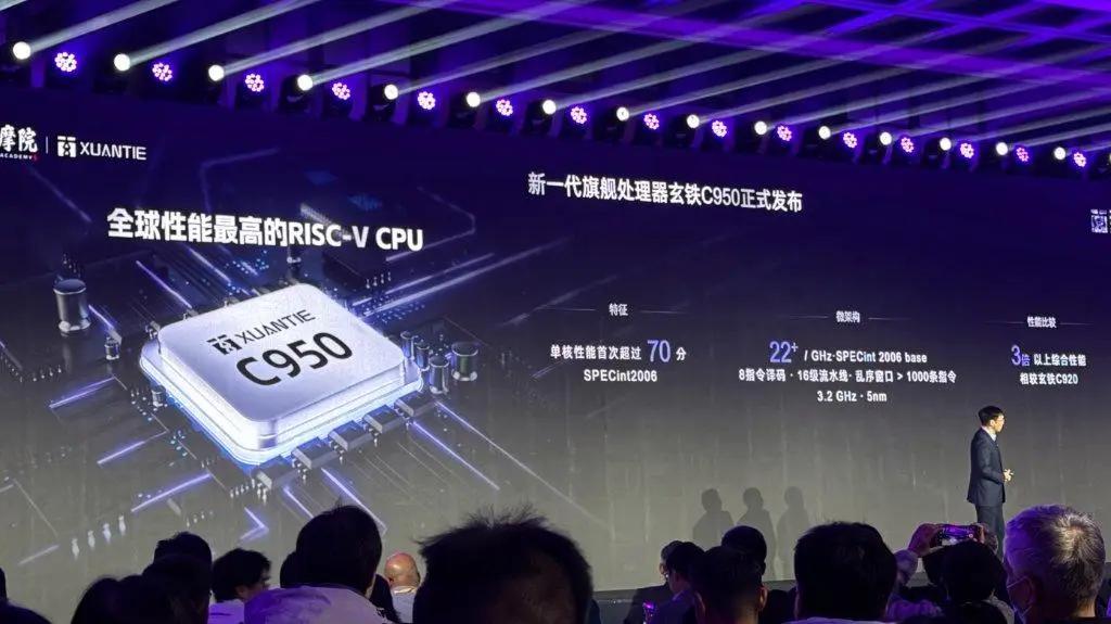 破局!阿里玄铁C950横空出世,国产芯片终于撕掉“低端”标签 关注国产科技多年,看到阿里达摩院发布玄铁C950,我倍感振奋——这是国产芯片向高端算力突围、RISC-V打破行业垄断的关键一步。 玄铁C950堪称国产芯片标杆:5nm制程、3.2GHz主频,SPECint2006单核性能破70分,综合性能是上一代3倍以上,刷新全球RISC-V纪录,比肩国际高端产品。 实测表现也很亮眼:云计算性能较主流产品提升30%+,自研AI加速引擎单核算力8TFLOPS,原生支持千亿大模型,打破CPU依赖GPU的局限。 对普通人来说,这意味着未来国产设备更亲民、AI应用更流畅,智能设备体验将大幅提升。 阿里达摩院7年深耕,从C910到C950,用实力证明国产芯片无需受制于人,这是国产科技自主可控的重要里程碑。