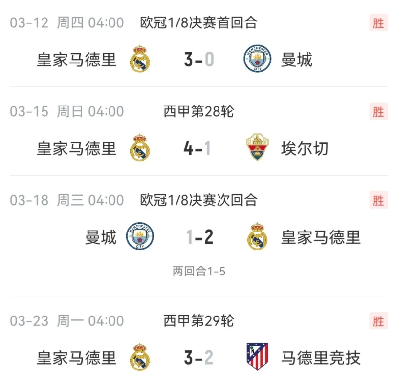 有一说一,皇马主教练阿伟洛亚打硬仗的能力还是很强的,欧冠连克穆里尼奥执教的本菲卡,两回合 5 球击败瓜迪奥拉的曼城,联赛 3 球击败西蒙尼带领的马德里竞技,这些都足以说明一点,打名帅和强队,虽然是菜鸟教练,但阿韦洛亚还是经得起考验的。 来看看阿隆索执教皇马期间对强队的战绩: