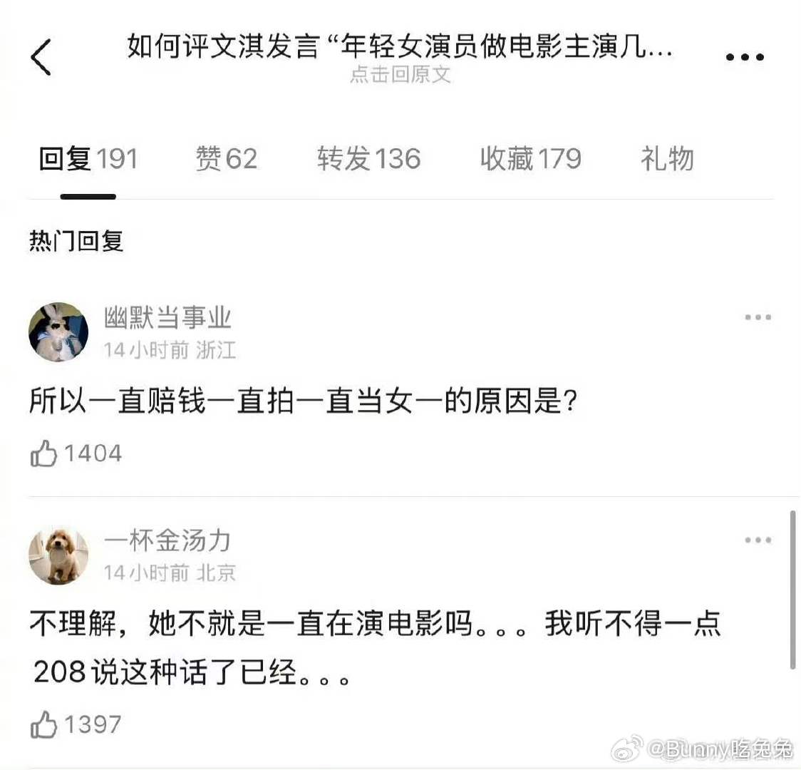 文淇说年轻女演员主演等于没有票房文淇称年轻女演员等于没有票房文淇说年轻女演员主演等于没有票房,文淇话虽然说的犀利但也没什么不对啊 票房不佳无法跟主流相比是事实 这些人嘴上说着流量别拍戏其实还是追捧流量的吧 又当又立自视清高的另有其人