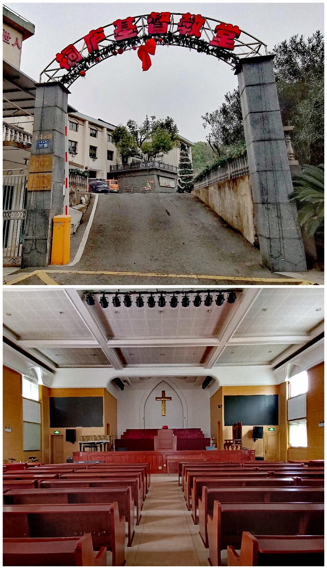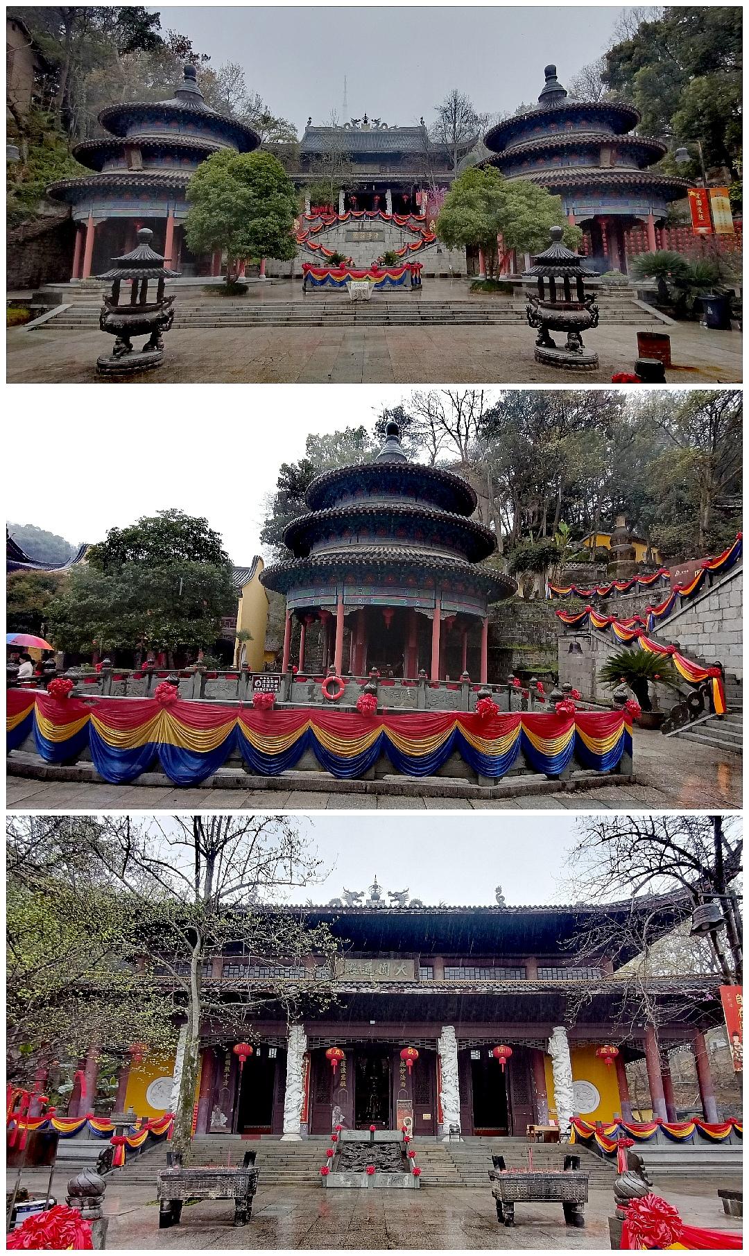 到一个城市去旅游,除了游景点,更重要的要去看城市的风貌和人文古迹。冒雨去了桐庐县圆通禅寺(图1),据说有800年历史,看造型像千年古刹,其实是重建的[捂脸]。不过天王殿造型还是很别致的(图1下.图2),这一对像北京天坛似的造型就更别具一格了(图3上中), 左边供奉着祖师,右边供奉着地藏王菩萨;后面是大圆通殿(图3下.图4),再后是更雄伟的大雄宝殿(图5-6)。 慕名前去桐庐博物馆,却修建闭馆了[捂脸](图7),未来湖公园未来两字吸引了我,前去一看大失所往(图8),停车拍照就走。还是路过桐庐中心广场旁边的桐庐基督堂好(图9),这是我旅游那么多城市,见过的唯一一座开放任人参观的基督堂,祝愿这基督堂,人丁兴旺,蒸蒸日上。 浙江 桐庐 寺庙 博物馆