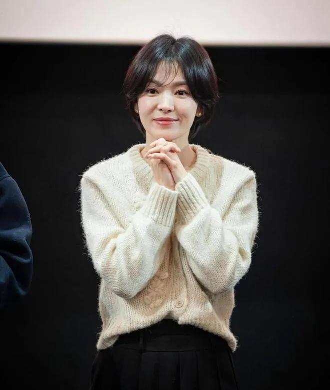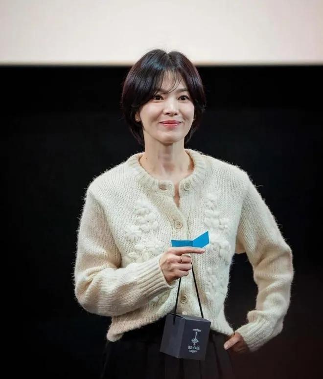 宋慧乔这状态是吃了防腐剂吧!😱 空气刘海 + 奶白针织衫 = 温柔本命!