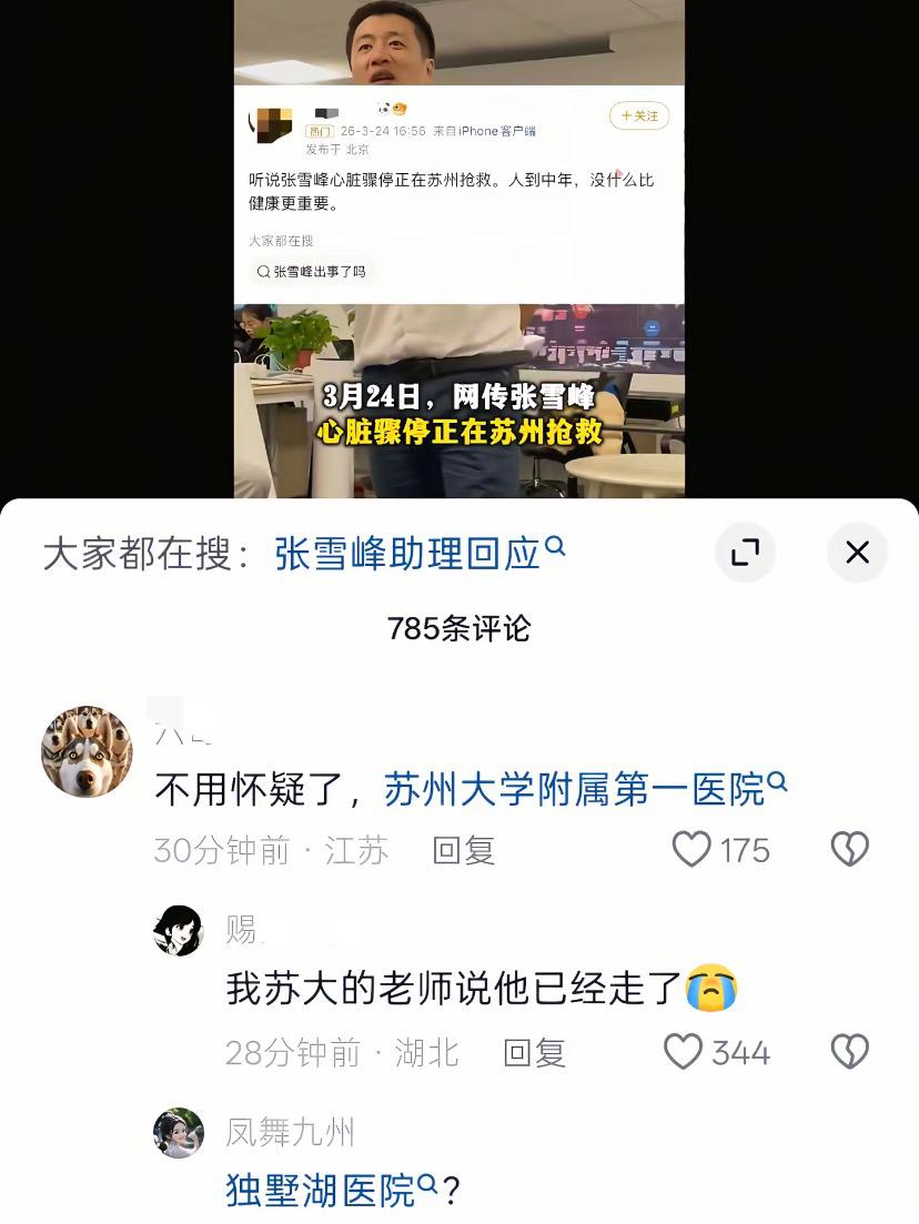 有网友说张雪峰抖音头像变成灰色了! 问一下:是今天变得还是之前就一直这样啊! 还有网友留言说:他苏大的老师说人已经没了! 网传说张雪峰心脏骤停抢救,现在网上好多人说人已经没了。 以张雪峰的性格,传了这么久应该会回应吧!还有他的家人、合伙人和助理也都说无可奉告。 如果真的是抢救,希望他现在已经抢救过来了。