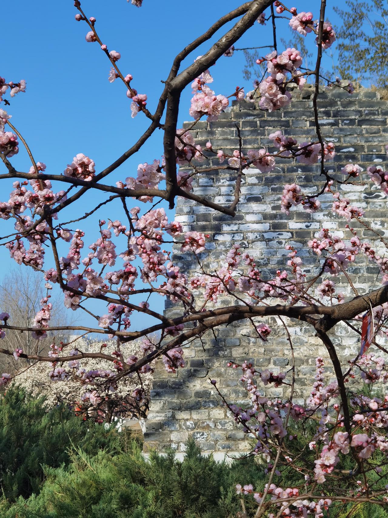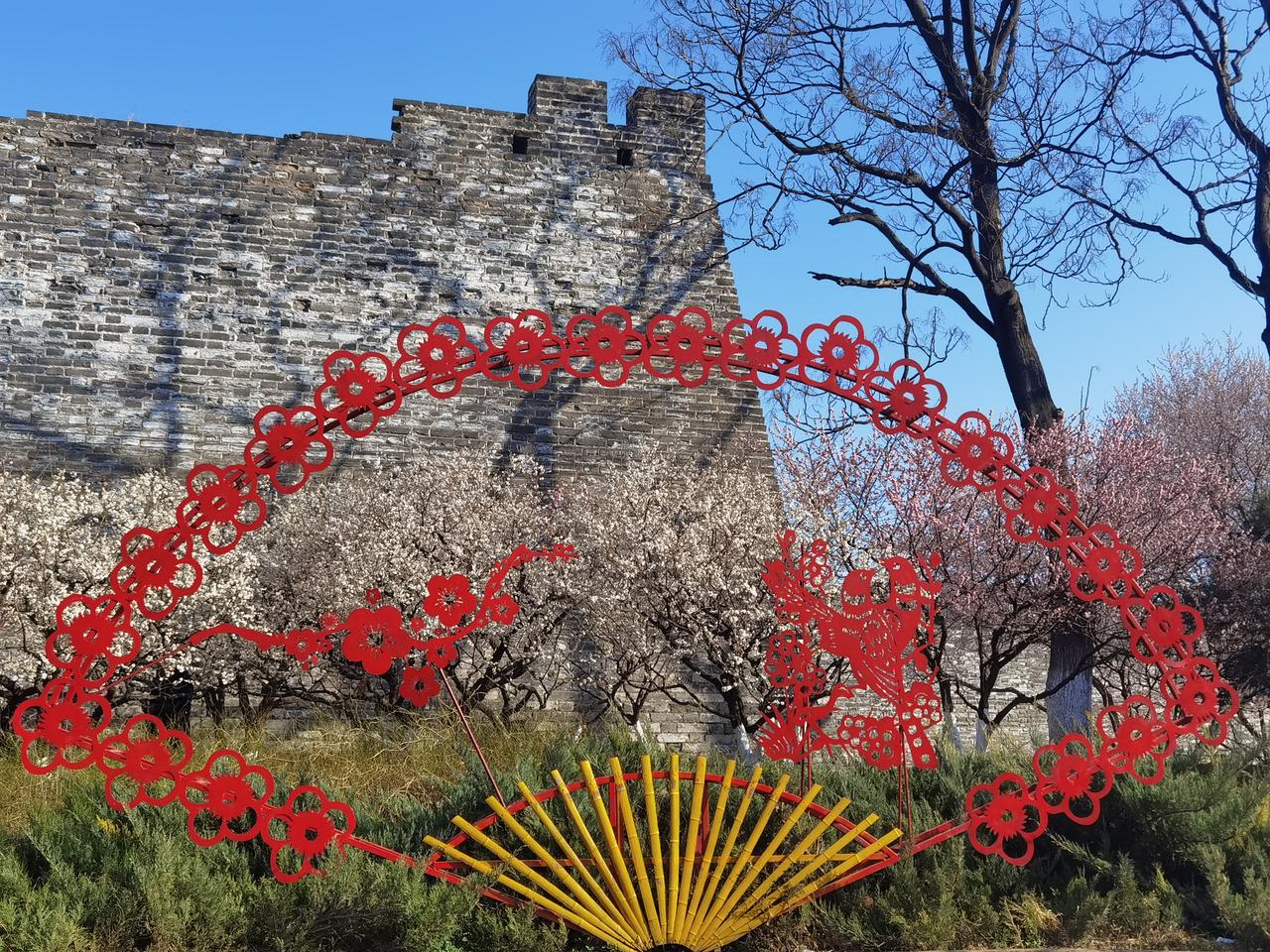 明城墙原来有40公里,现在仅存1.5公里,太可惜了! 现存的1.5公里被建设成明城墙遗址公园,现在正是梅花盛开季,吸引了众多游客前往欣赏。盛开的梅花和古朴的城墙共同演绎了一副京城春花烂漫盛景图。 从现存明城墙遗址看,当时的城墙又高又宽,城砖也远大于现在的砖 ,可见当时的修筑水平和质量都是相当高的。目前尚存东南角楼一座,花10元可登楼参观。 公园属于开放式 ,免费参观。