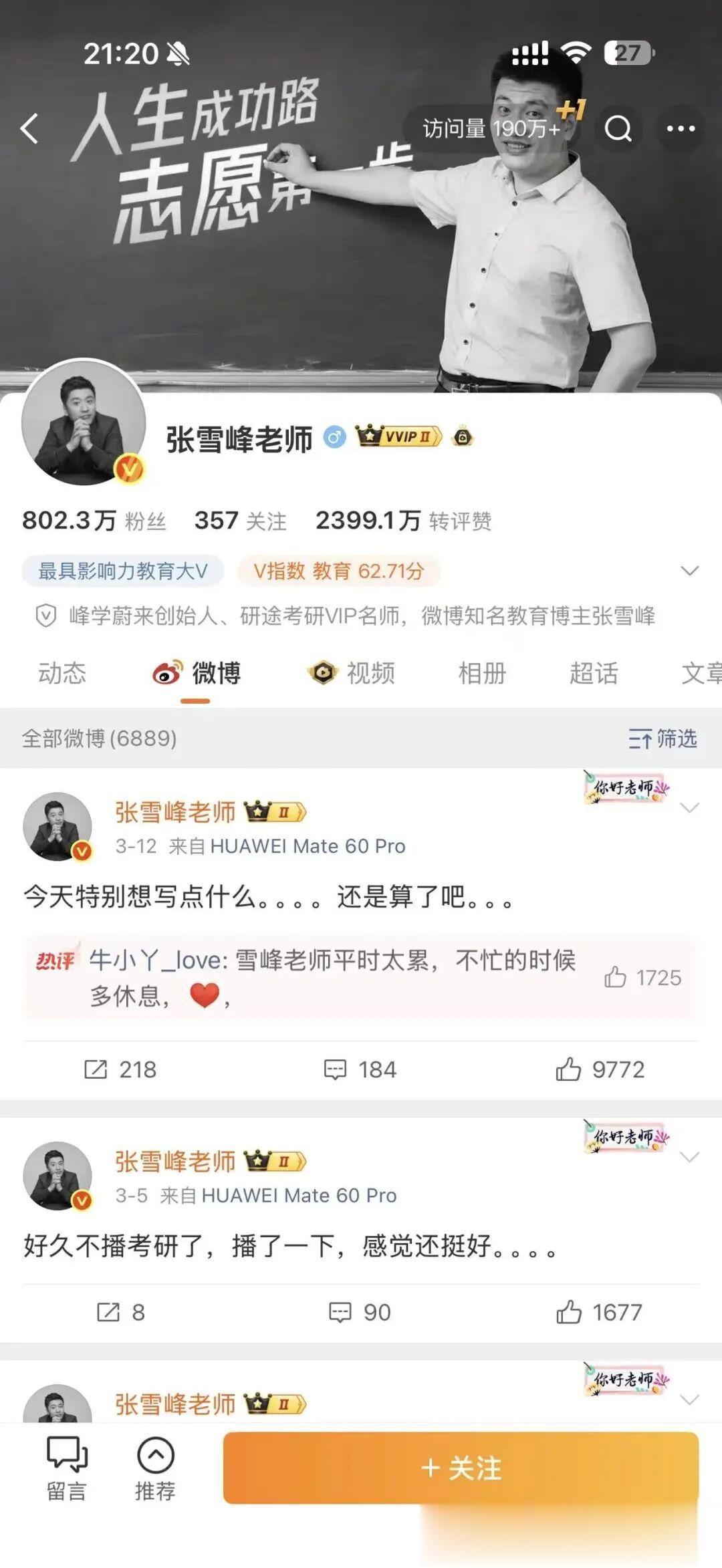 张雪峰的朋友圈截图