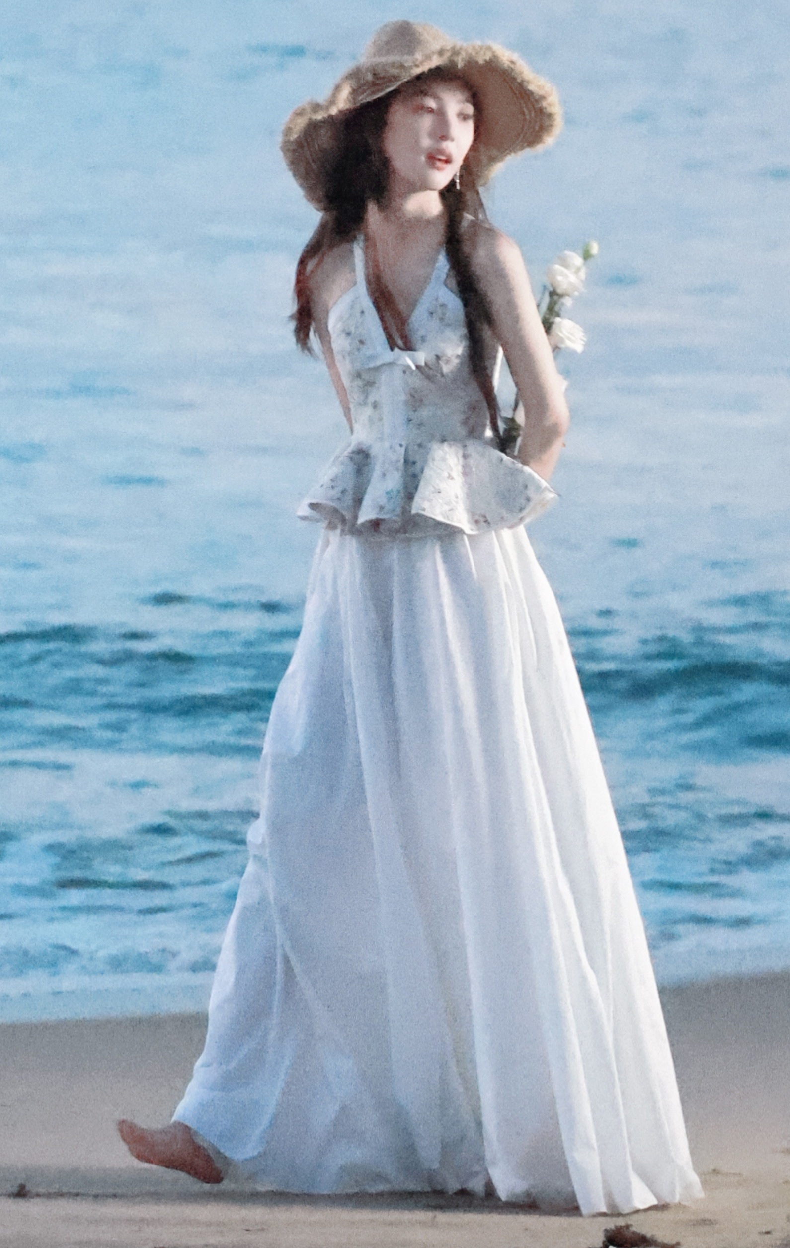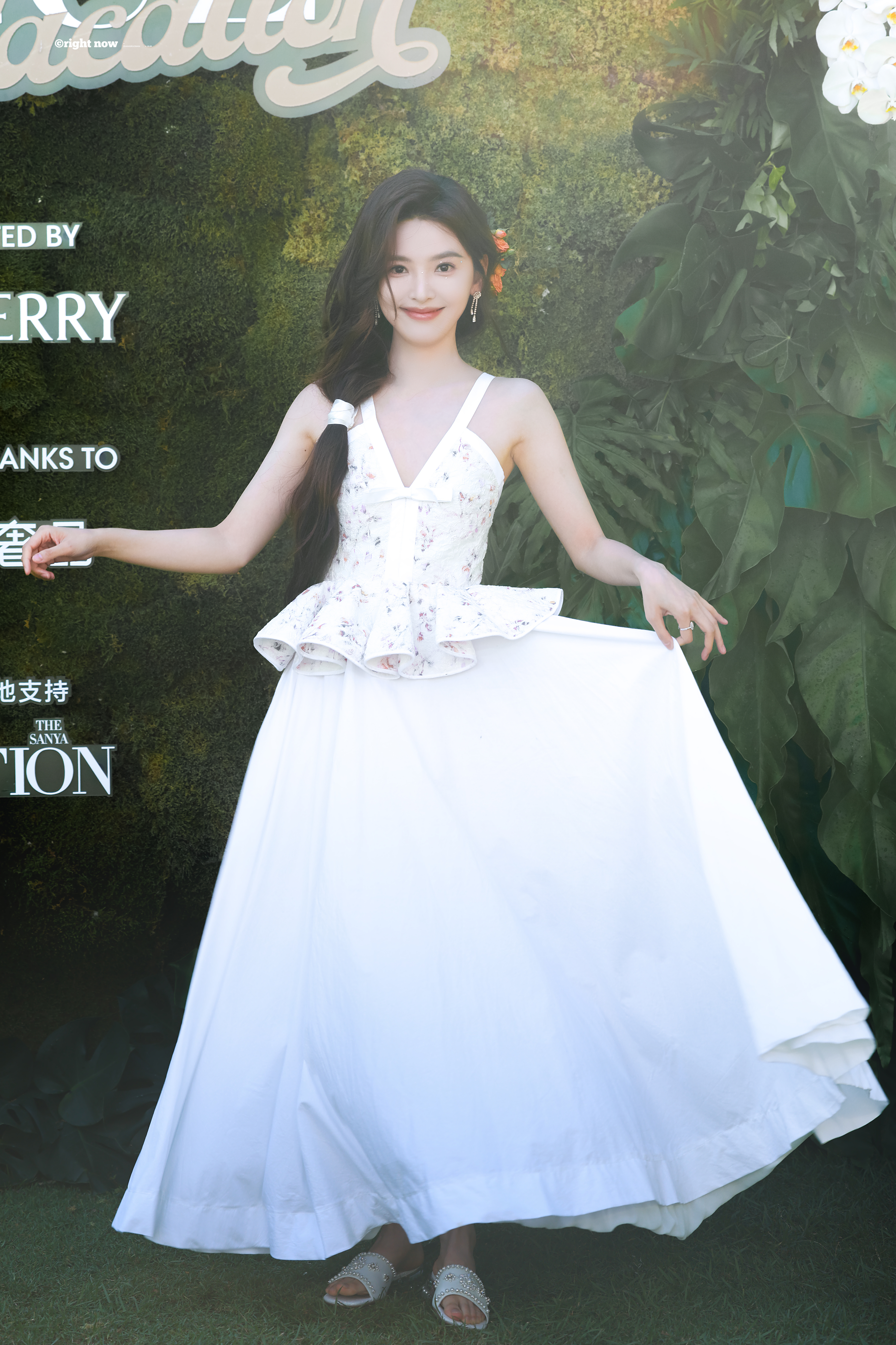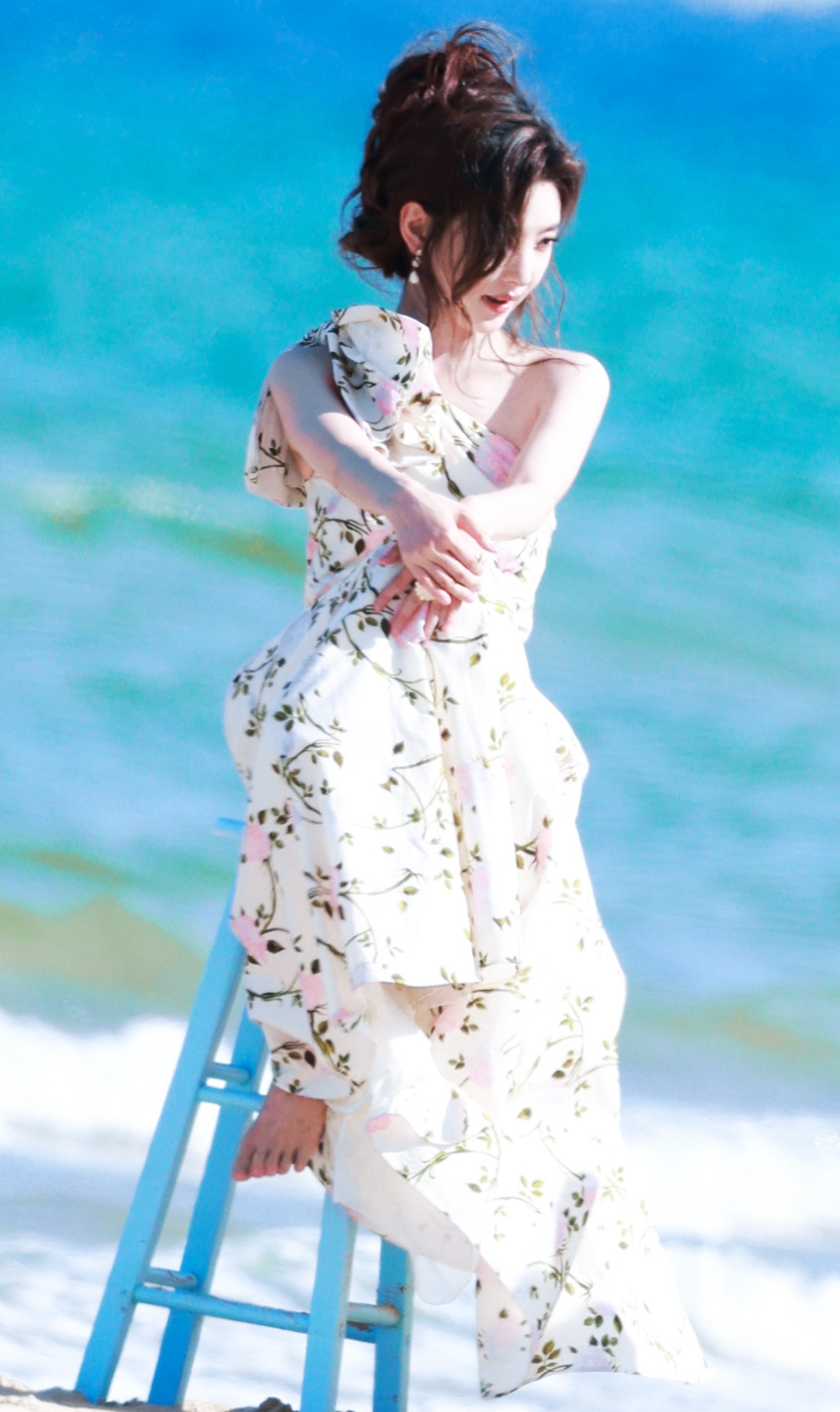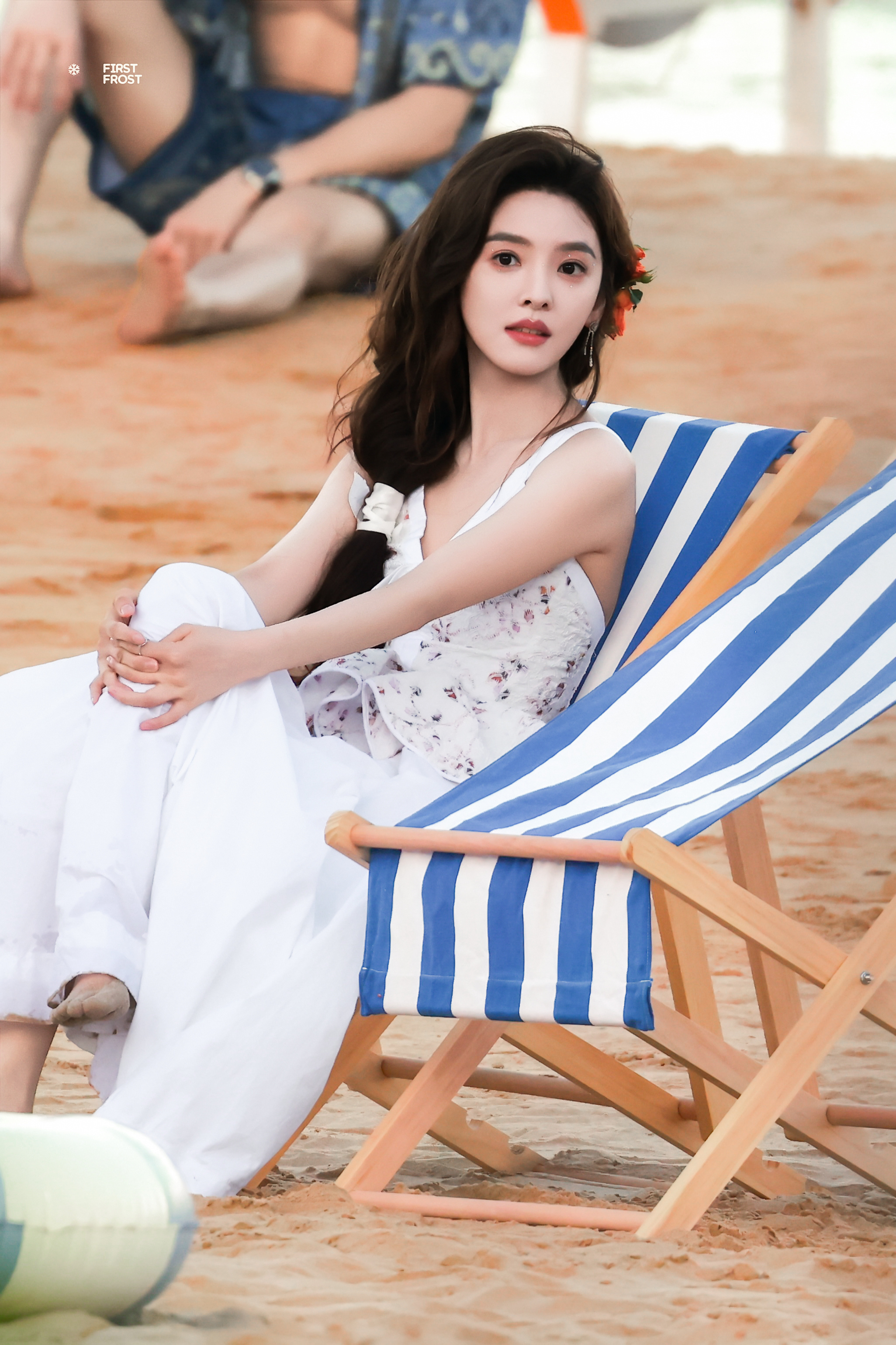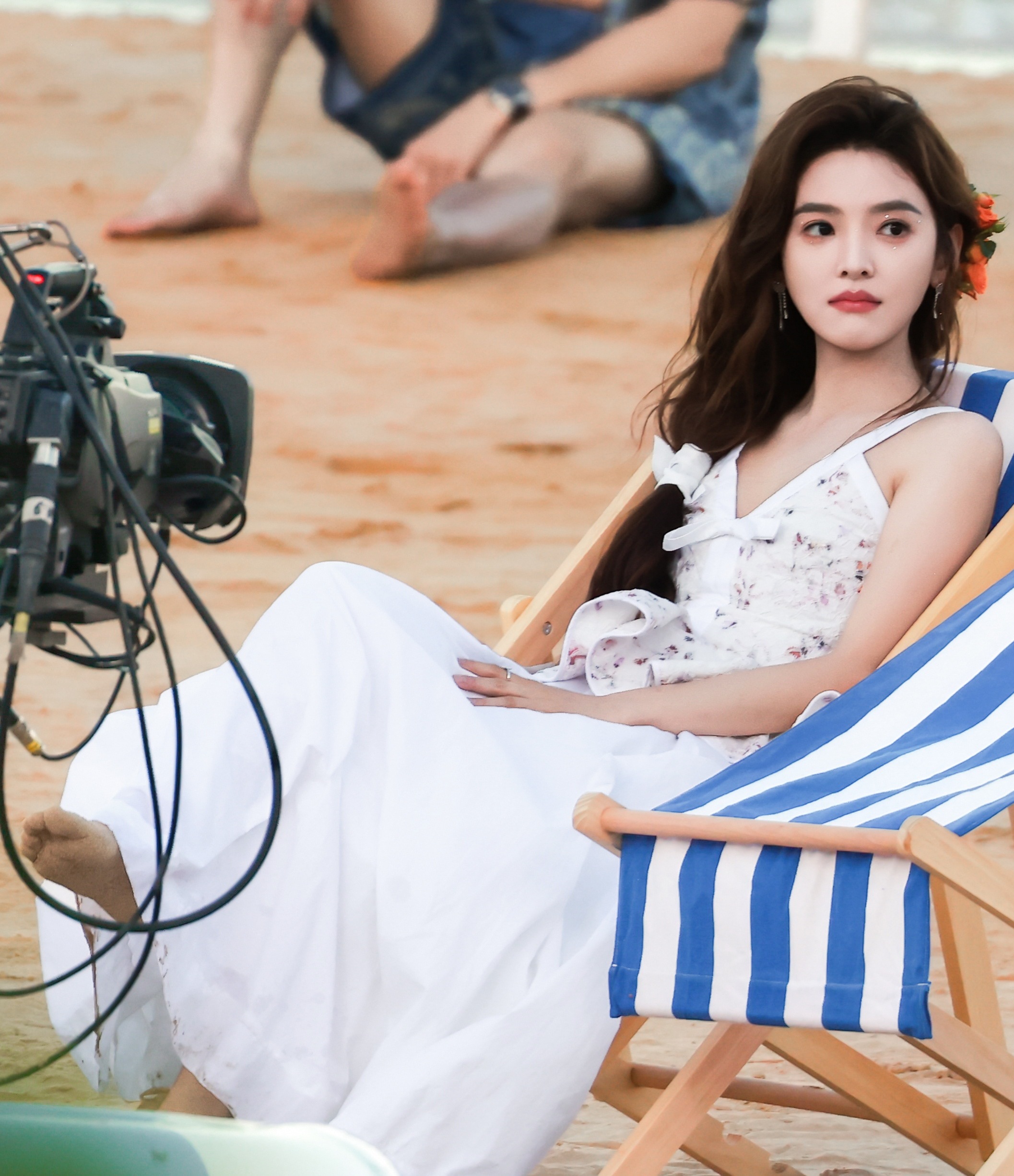 章若楠角色热度破亿 楠楠海边度假光jio玉足 白色珍珠高跟凉拖