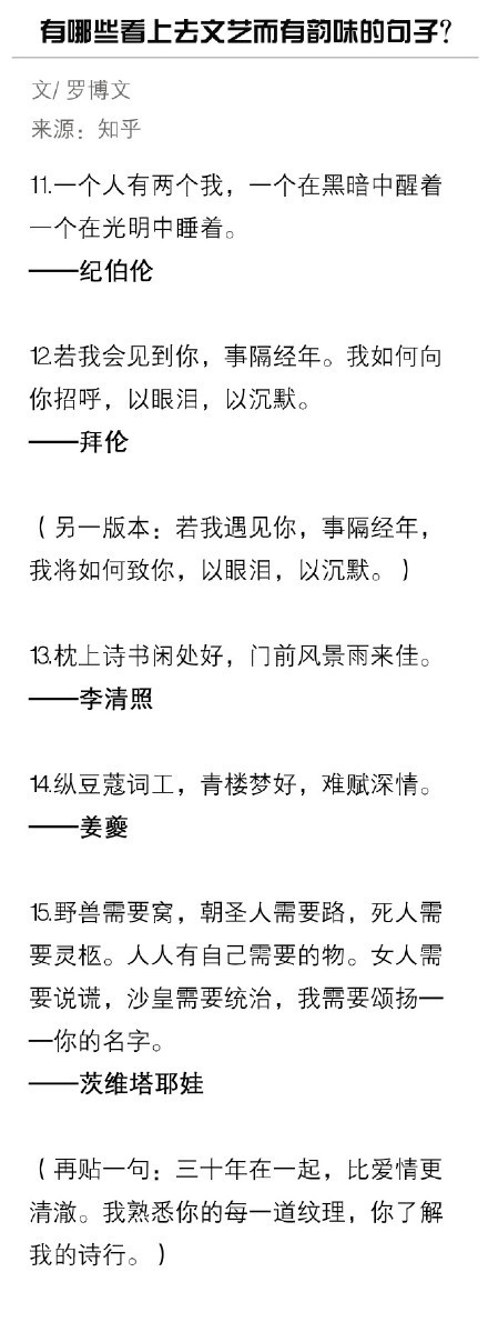 有哪些看上去文艺而有韵味的句子...