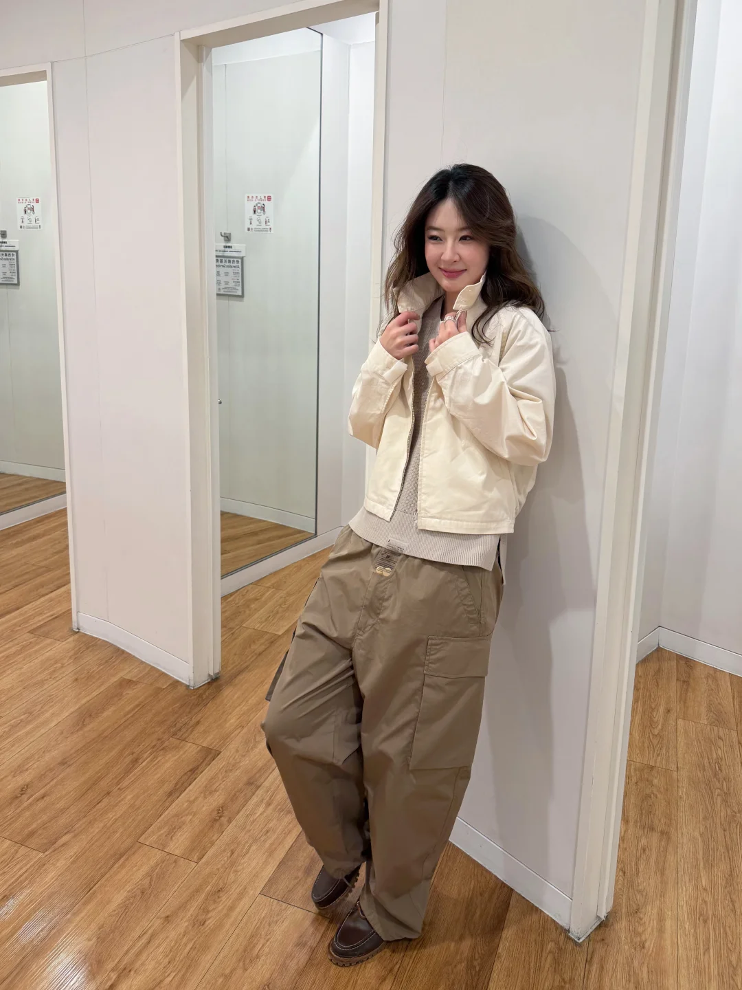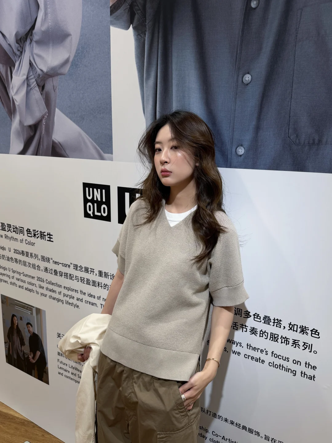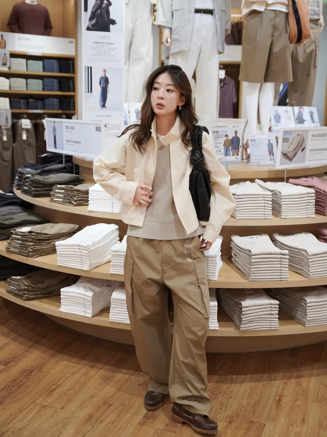 又来快乐老家优衣库啦 听说又上新了来逛逛这次的U系列 搭了一套朋友直呼帅哥😎 经典短款夹克➕V领针织➕阔腿工装裤 淡淡的奶白色,一套很适配日常初春穿搭 白色经典短款夹克感觉是衣橱里必备的一件 立领设计版型很好 上身后人都精神了 短款拉长视觉腰身比例 V领针织上身意外的好看 还有一件黑色的感觉也很百搭~ 阔腿工装裤是这个系列必买的单品之一 降落伞裤的版型 升级弧形线条很流畅舒适 立体双口袋自带复古感 好看又能装