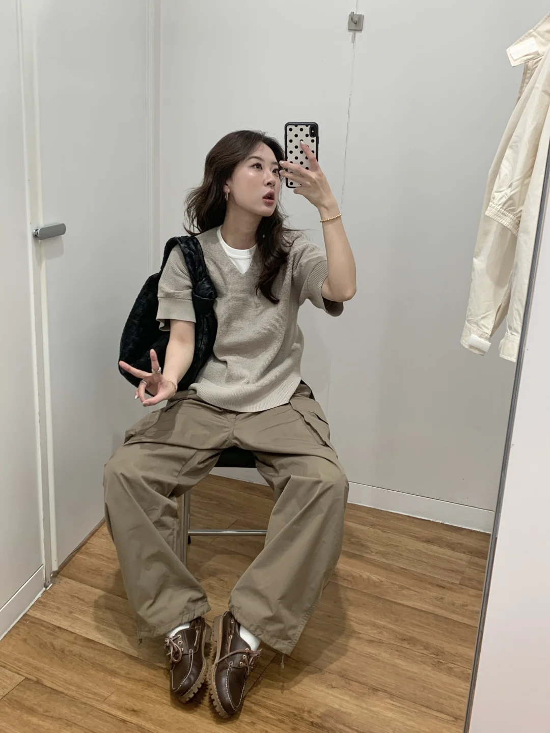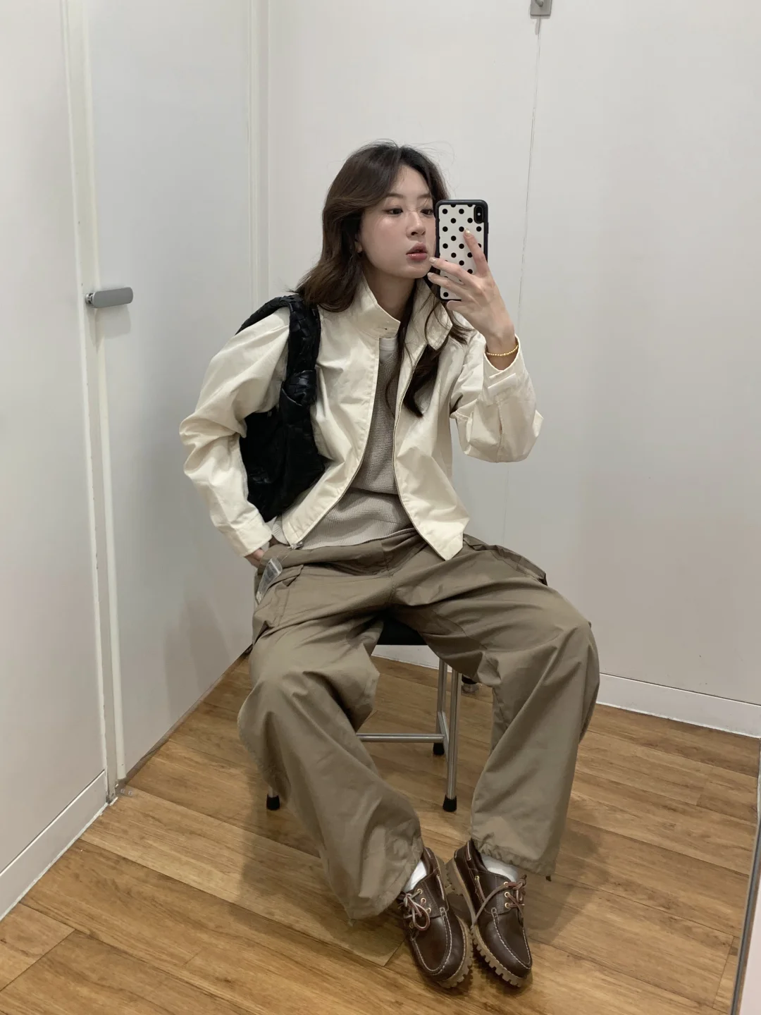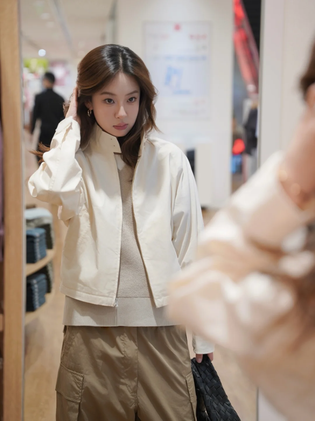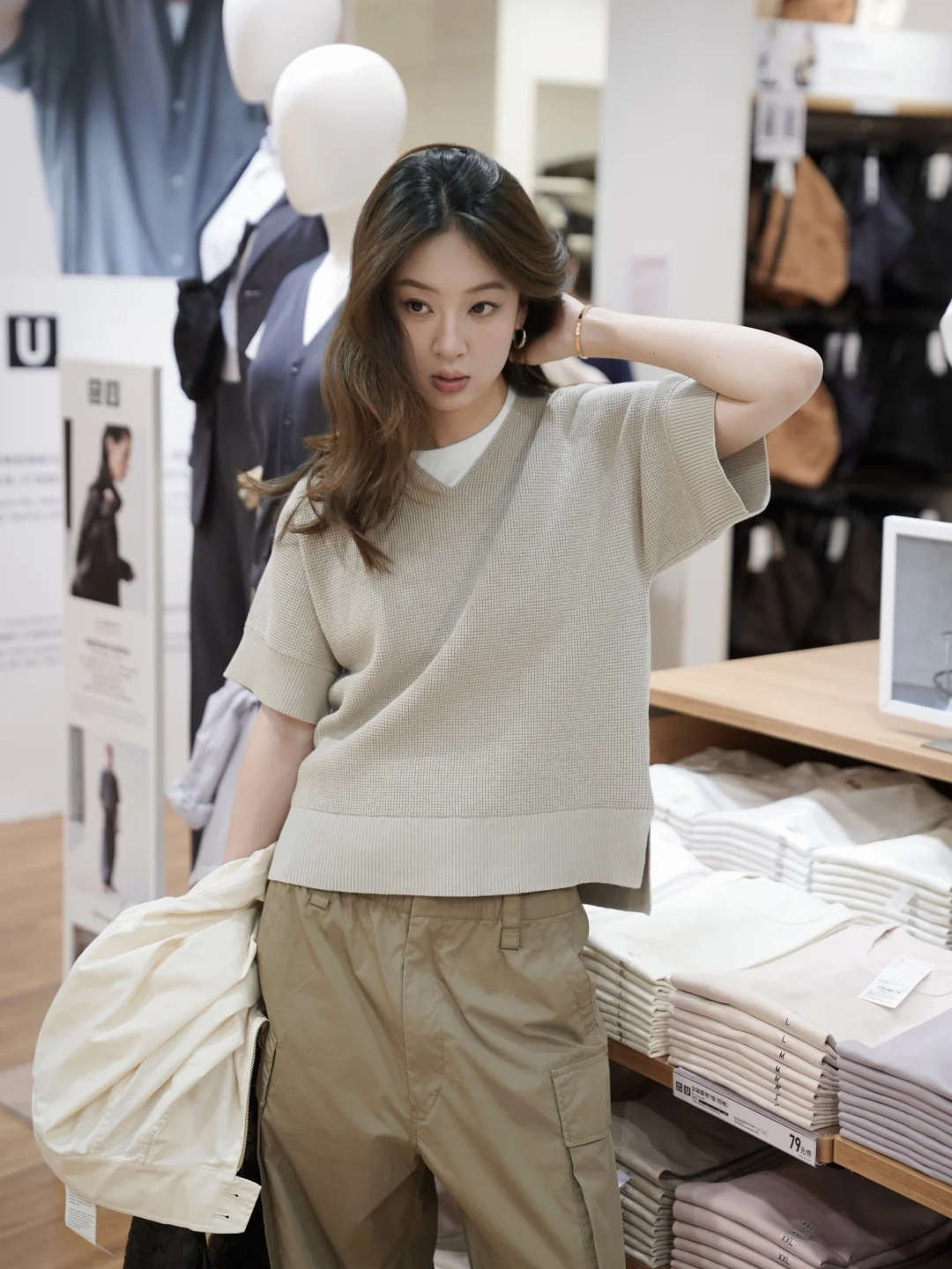 又来快乐老家优衣库啦 听说又上新了来逛逛这次的U系列 搭了一套朋友直呼帅哥😎 经典短款夹克➕V领针织➕阔腿工装裤 淡淡的奶白色,一套很适配日常初春穿搭 白色经典短款夹克感觉是衣橱里必备的一件 立领设计版型很好 上身后人都精神了 短款拉长视觉腰身比例 V领针织上身意外的好看 还有一件黑色的感觉也很百搭~ 阔腿工装裤是这个系列必买的单品之一 降落伞裤的版型 升级弧形线条很流畅舒适 立体双口袋自带复古感 好看又能装
