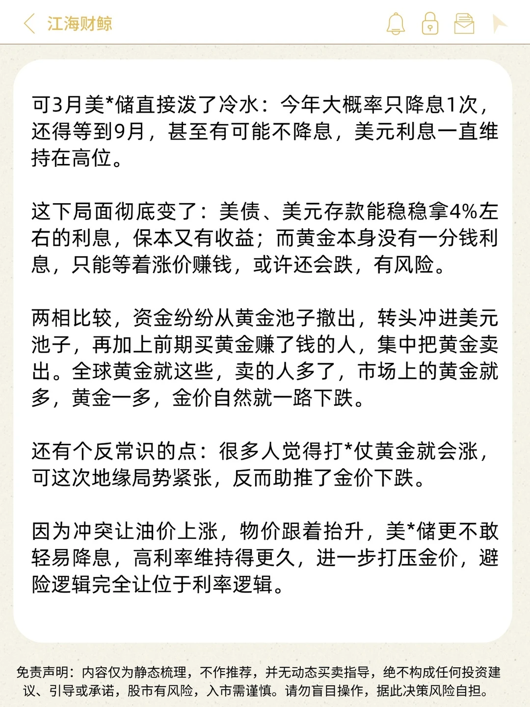 一天跌穿五个关口,黄金的避险神话还稳吗现货黄金这一跌,让不少人看傻了眼。单日