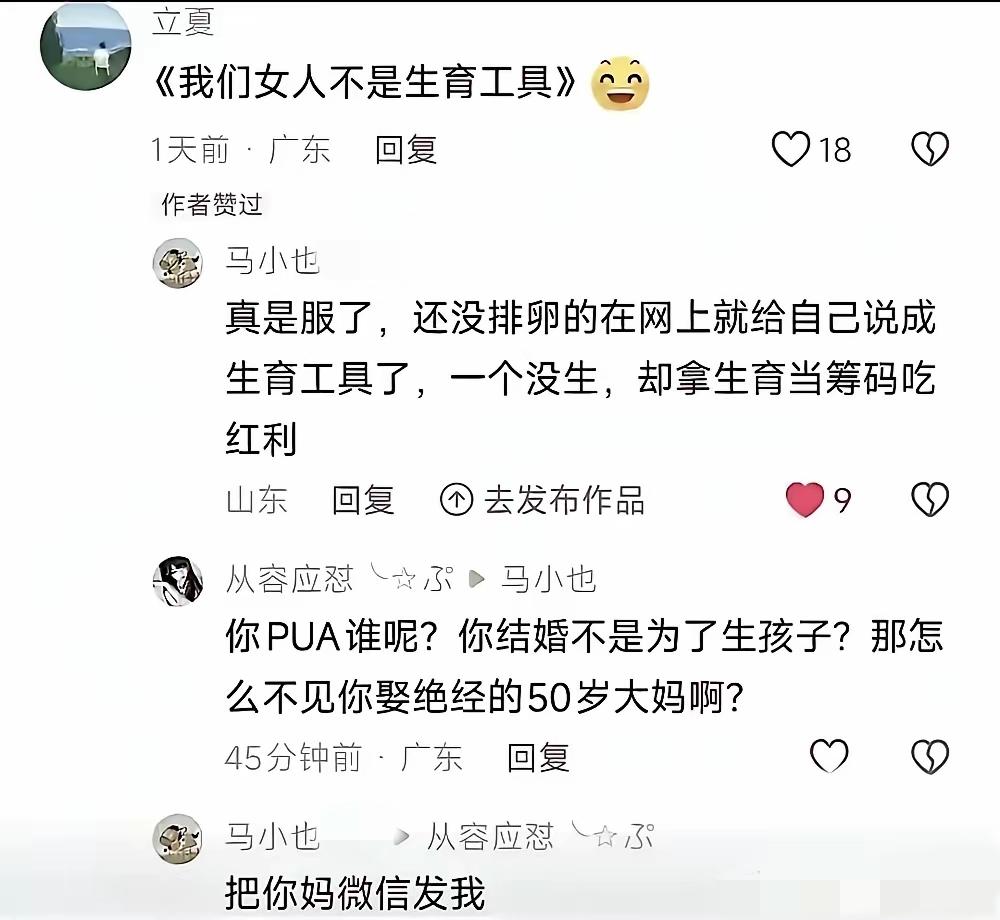 攻击性太强了,女子在网上打拳“我们女人不是生育工具”,被网友一句话怼得没话可说。
