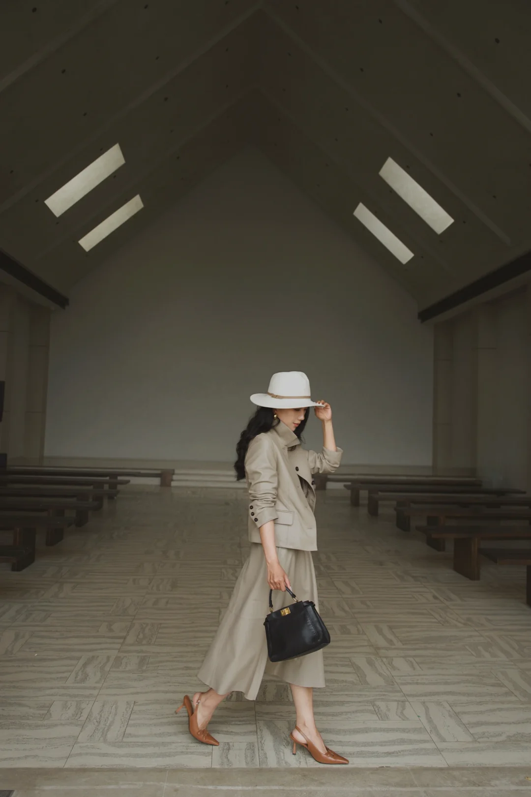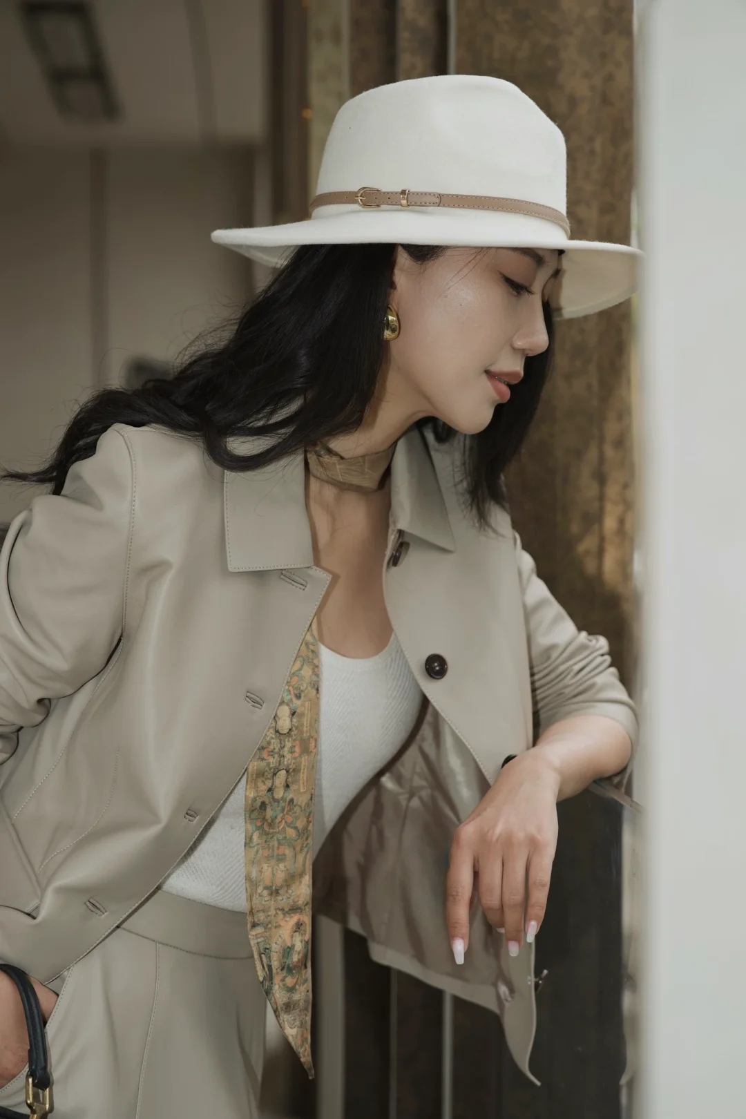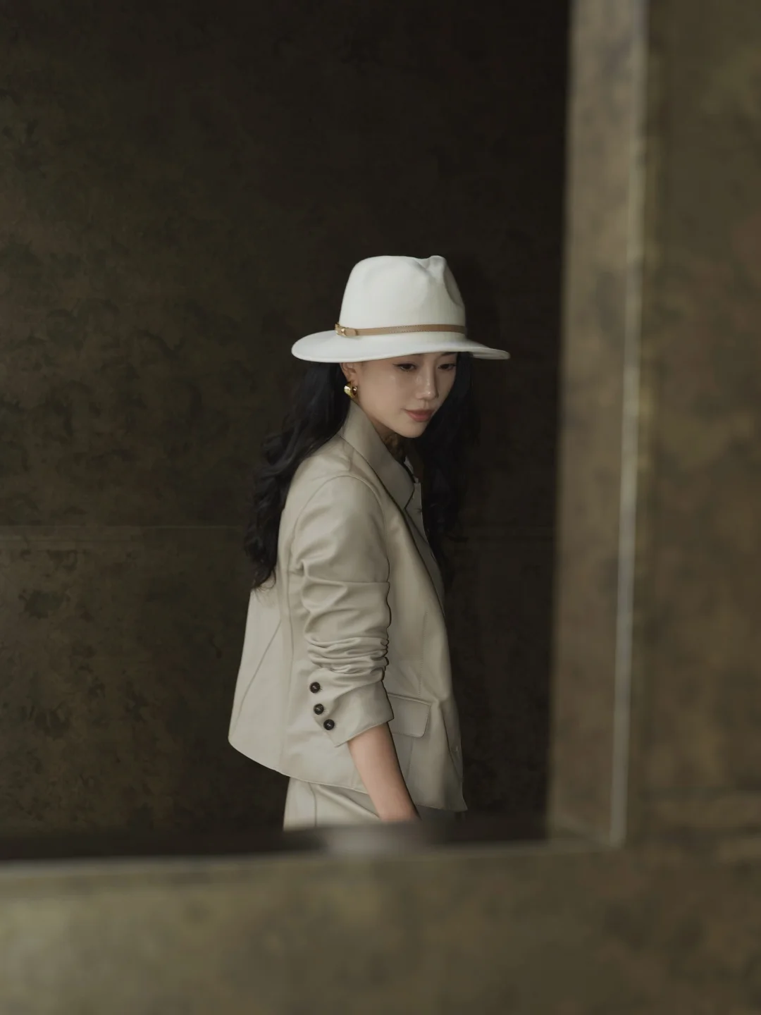 终于忙完手头的事,周末偷得半日闲,换上舒服的燕麦色套装,揣着相机出门走走。 皮质柔软,风轻轻吹过时,衣摆微微晃动,像被风温柔地推着走。那顶白色的呢帽,整个人都松了下来,又能为我阻挡一丝初春凉意。湖边悠闲,脚步都变得懒洋洋的。 沿着湖边慢慢散步,云层散开阳光透出时,树影会斑驳地洒在地上。找个安静的咖啡厅坐着发呆,什么都不想,只是看着天色慢慢变柔。 不赶时间,安静享受属于自己的周末悠闲。