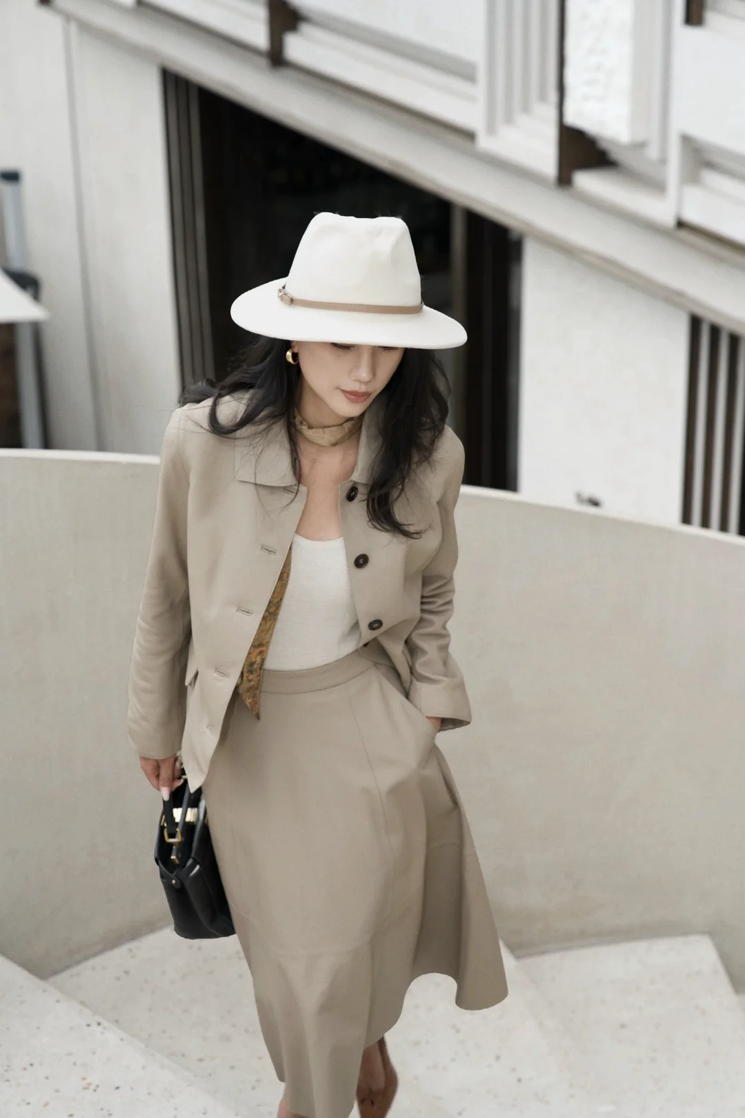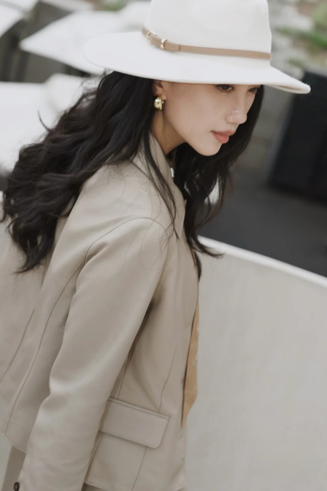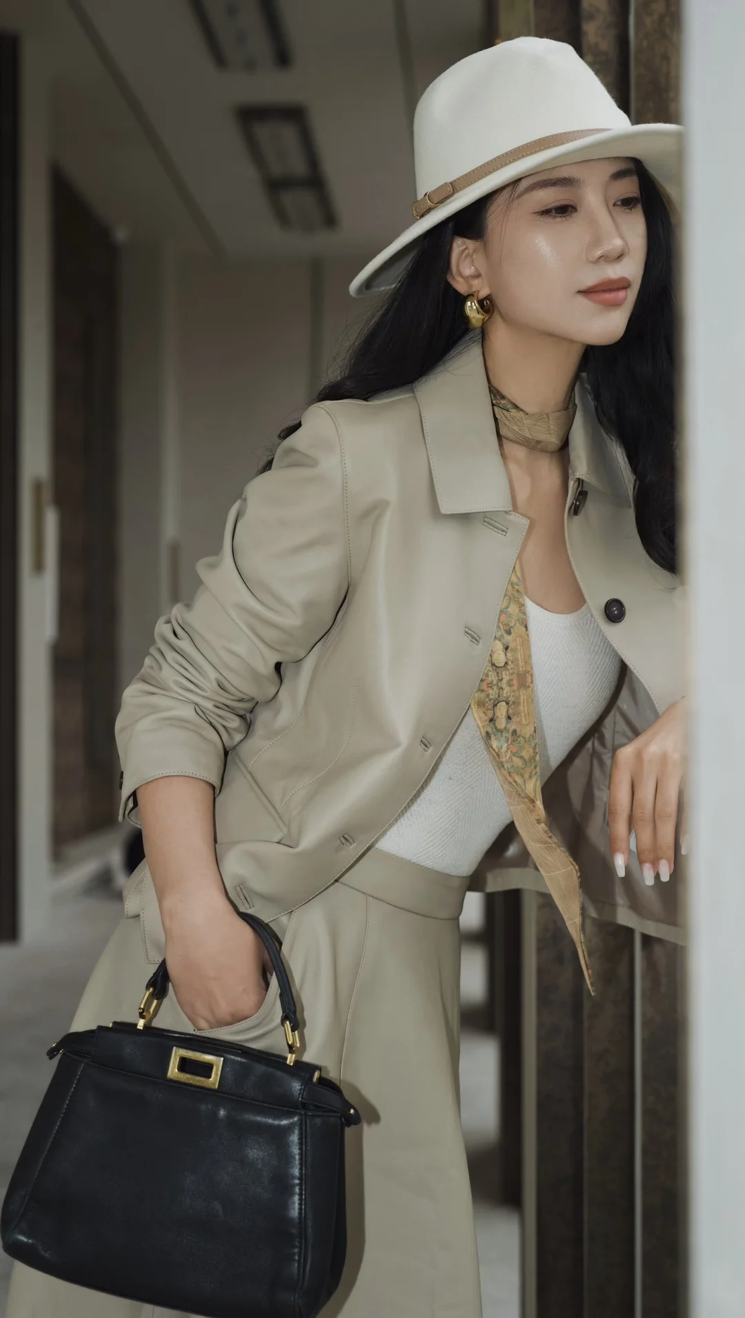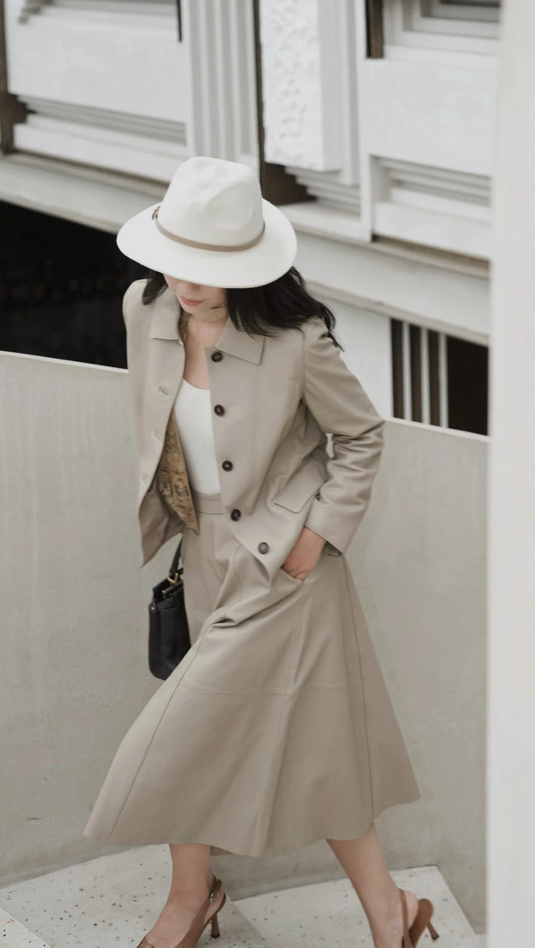 终于忙完手头的事,周末偷得半日闲,换上舒服的燕麦色套装,揣着相机出门走走。 皮质柔软,风轻轻吹过时,衣摆微微晃动,像被风温柔地推着走。那顶白色的呢帽,整个人都松了下来,又能为我阻挡一丝初春凉意。湖边悠闲,脚步都变得懒洋洋的。 沿着湖边慢慢散步,云层散开阳光透出时,树影会斑驳地洒在地上。找个安静的咖啡厅坐着发呆,什么都不想,只是看着天色慢慢变柔。 不赶时间,安静享受属于自己的周末悠闲。