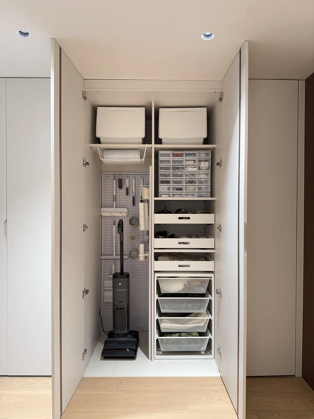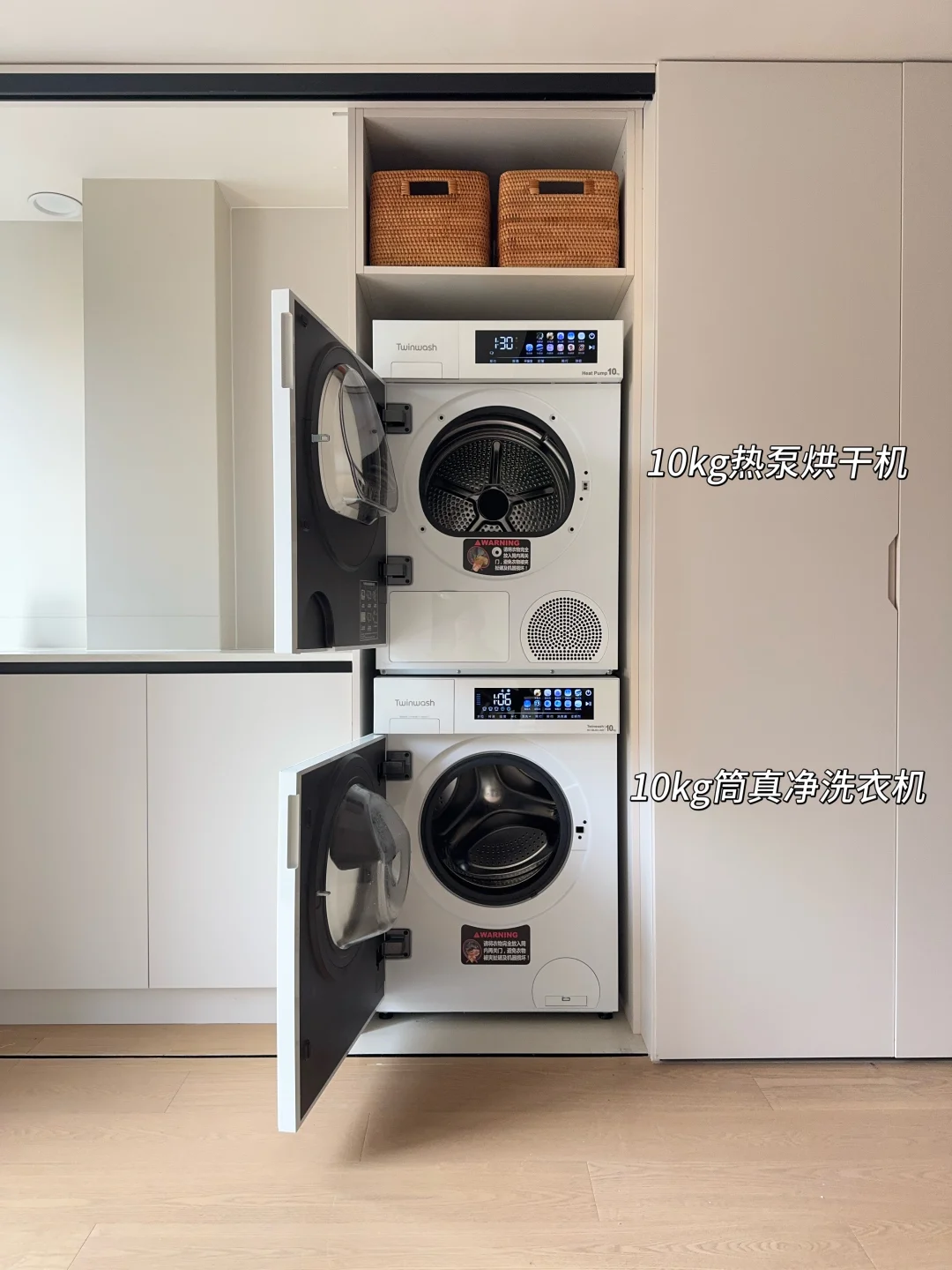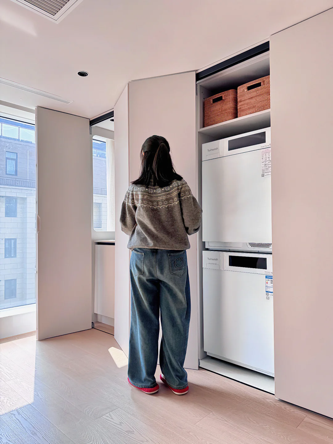 新家的柜子里有个2㎡隐藏洗衣区深得我心!双扇折叠门一拉就是家政区,关上就是完整的收纳墙,为了配合这个洗衣区我做足功课,最终选了Twinwash町渥小方糖洗烘套装T7W,纯平全嵌进柜体,不仅不浪费一寸空间,全面屏一体化设计操作顺手,用了一个月越用越满意,真心觉得这钱花得太值了!