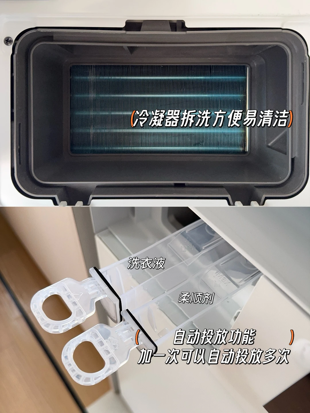 彩色全触控大屏功能一目了然,自动投放盒倒一次就能用3个月,不用每次洗衣都手动加液,wifi互联随时查看洗衣进度,陪孩子玩、追剧也不怕错过时间,真是懒人福音,毛屑盒和冷凝盒都能轻松拆卸方便清洁,维护起来一点不麻烦,细节控真的会夸!