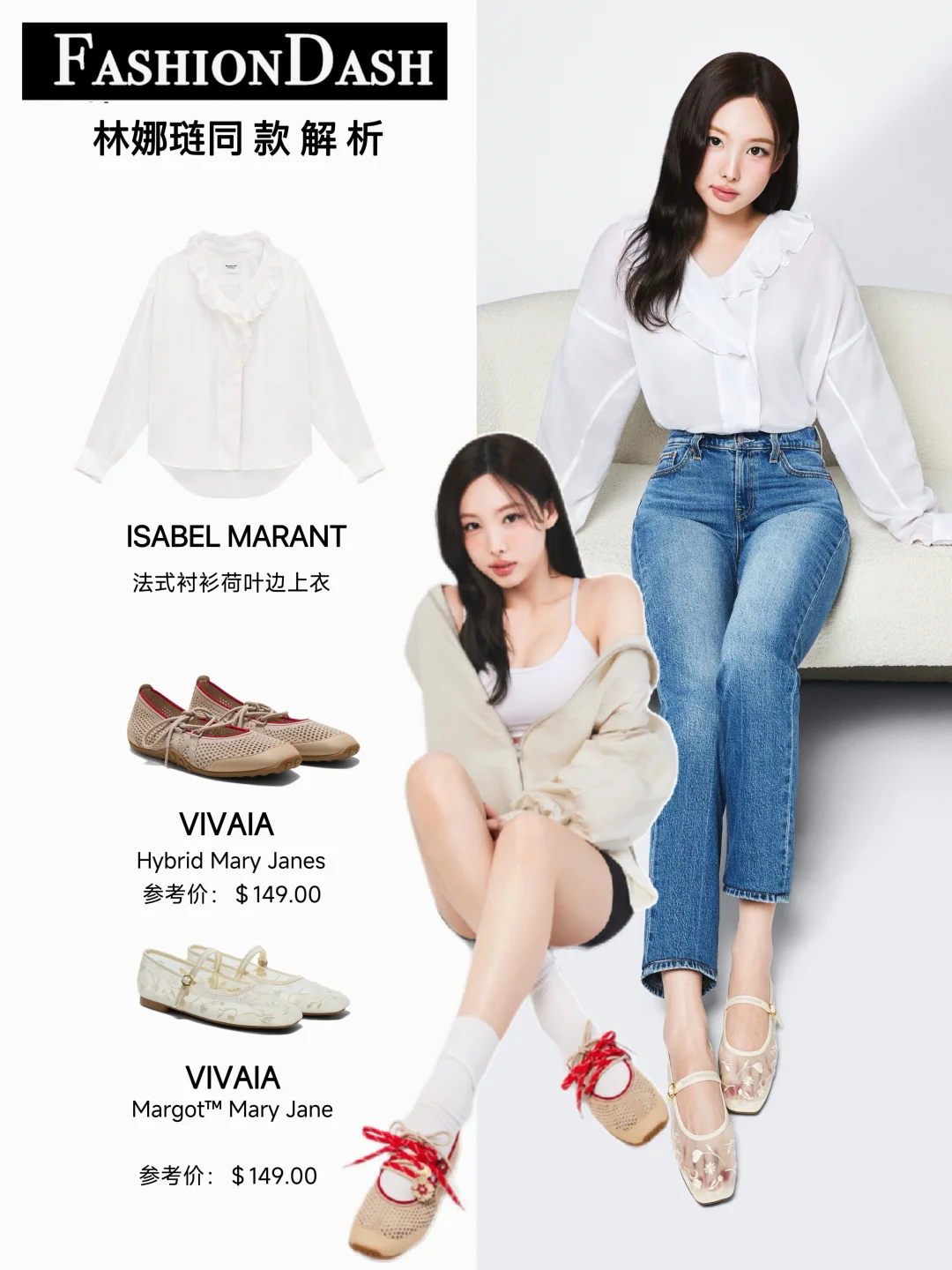 林娜琏的审美真的很在线,无论是机场街拍还是大片造型,都蛮时髦有亮点的,整理了她的一些精彩穿搭,一起来看看! 白衬衫搭配牛仔裤和刺绣玛丽珍鞋,干净清爽又显气质!做旧外套搭配短裙的组合又酷又元气,红鞋点睛让造型更有记忆点……透着浓浓春日气息,甜的刚好!