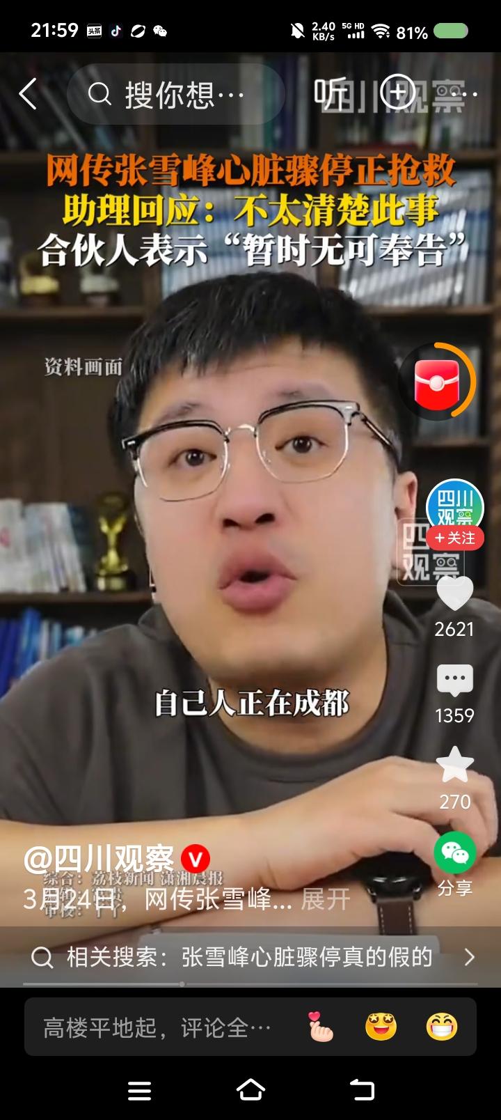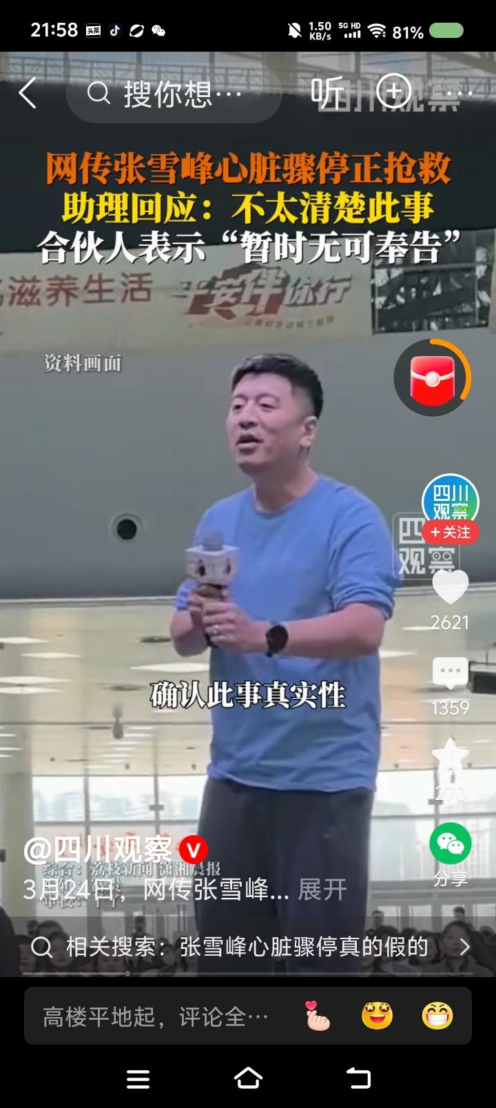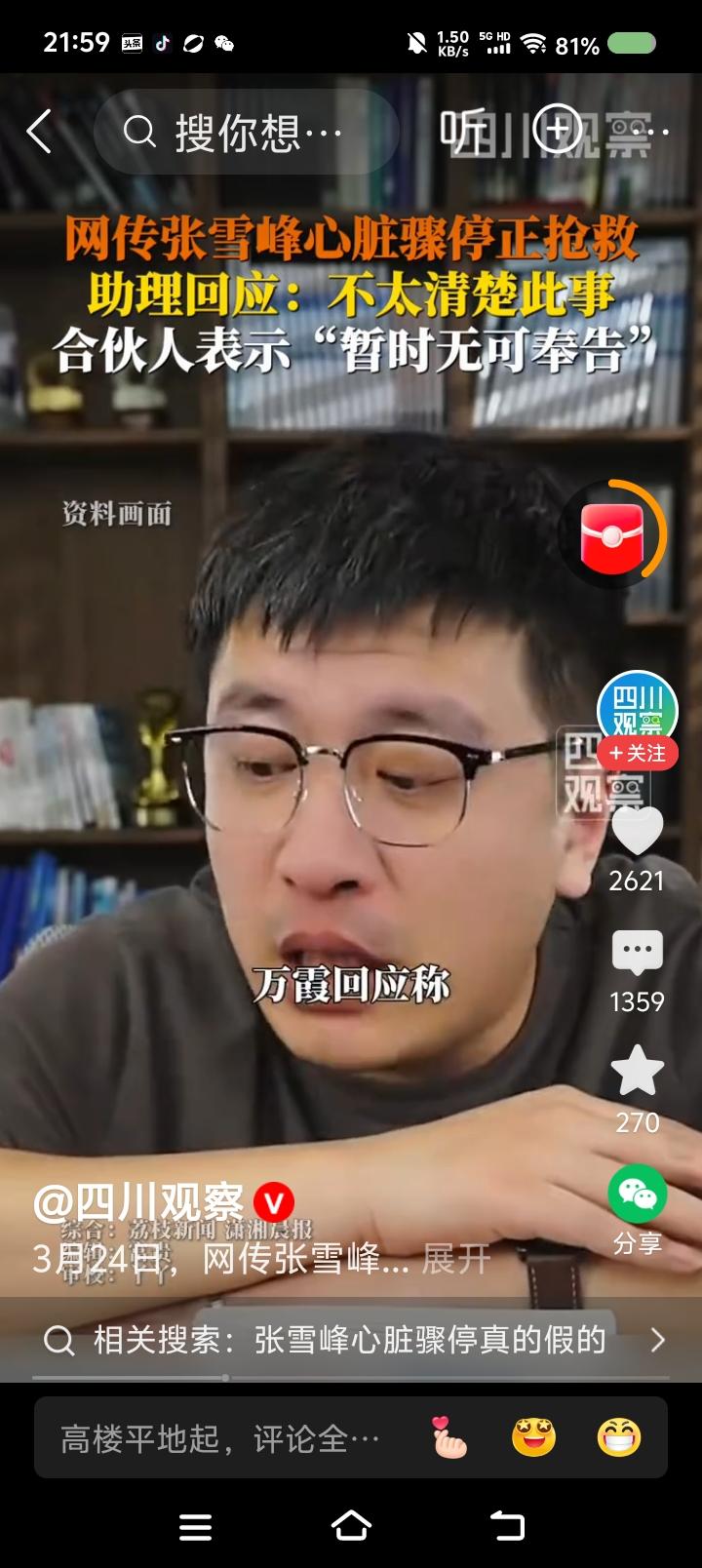 蹲一个张雪峰回应,希望人没事儿。张雪峰还是得注意休息啊。