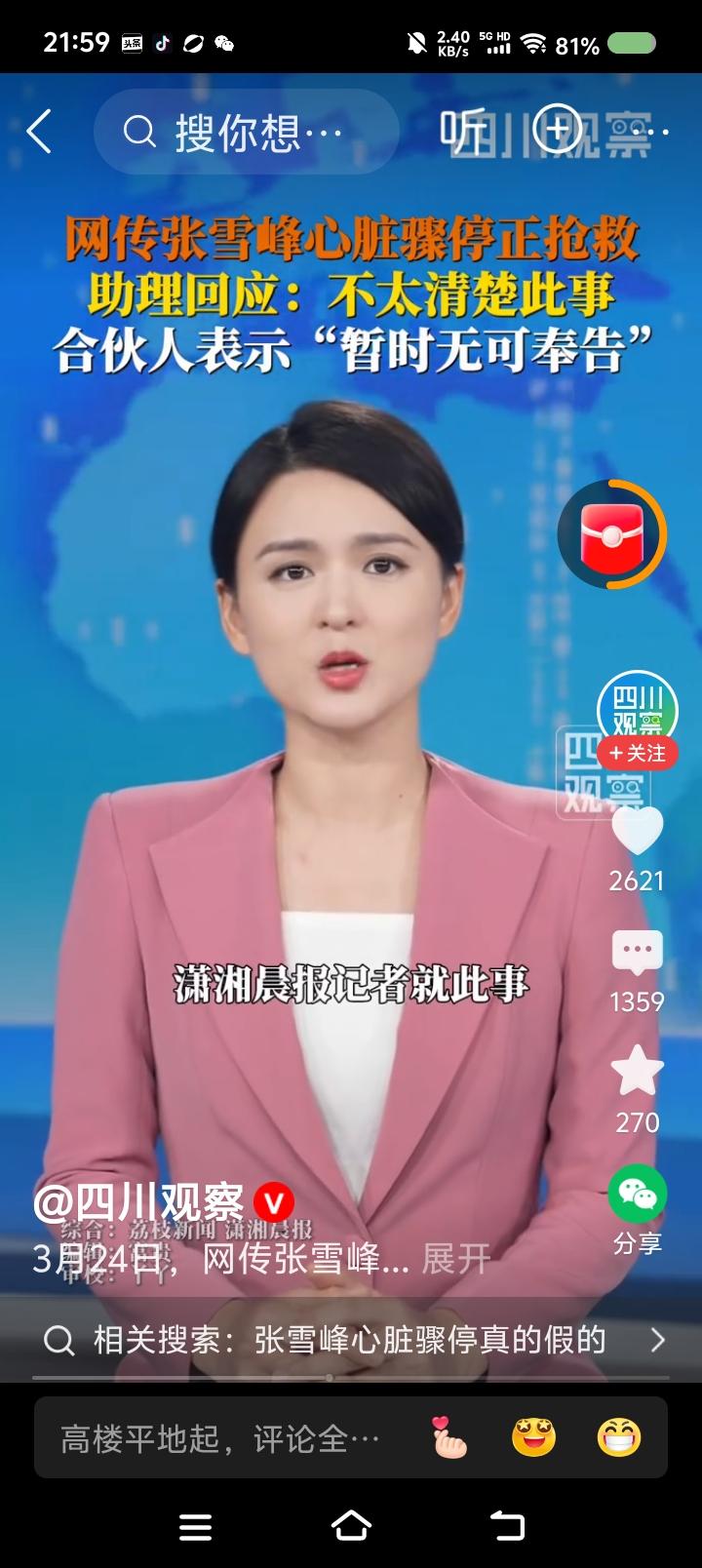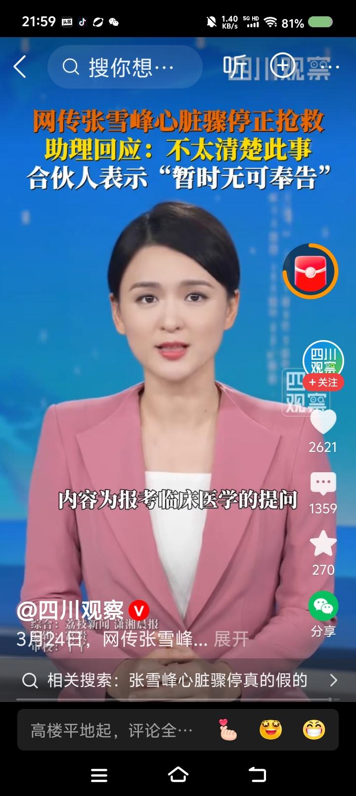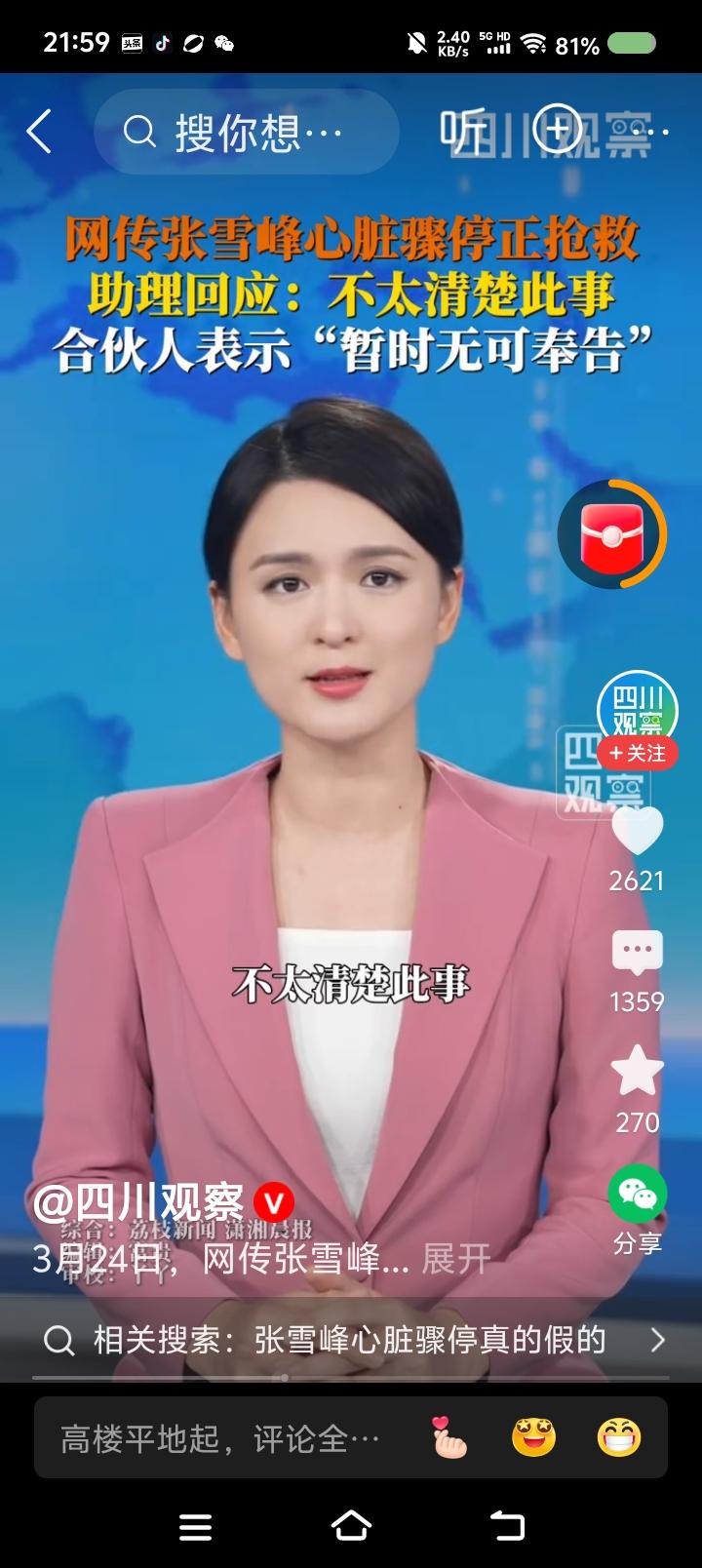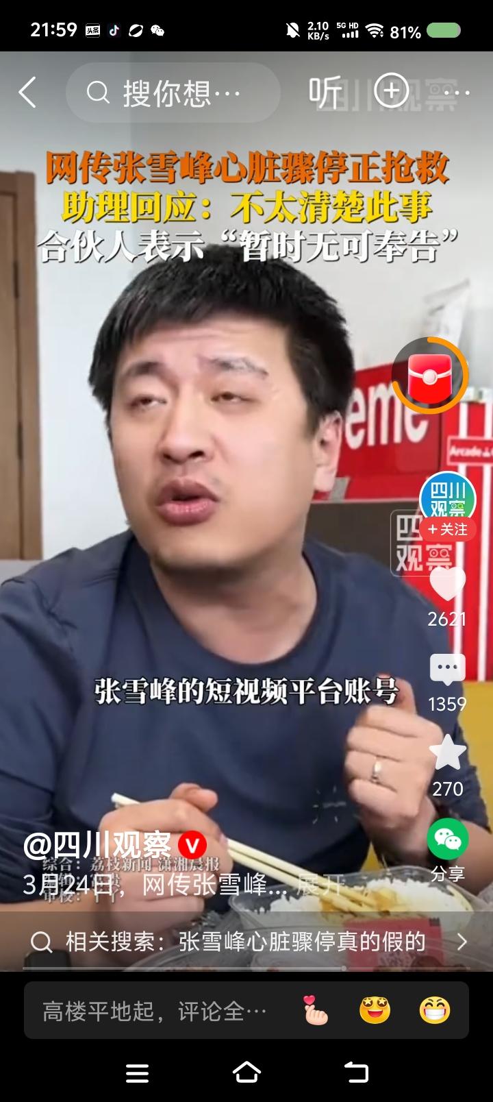 蹲一个张雪峰回应,希望人没事儿。张雪峰还是得注意休息啊。