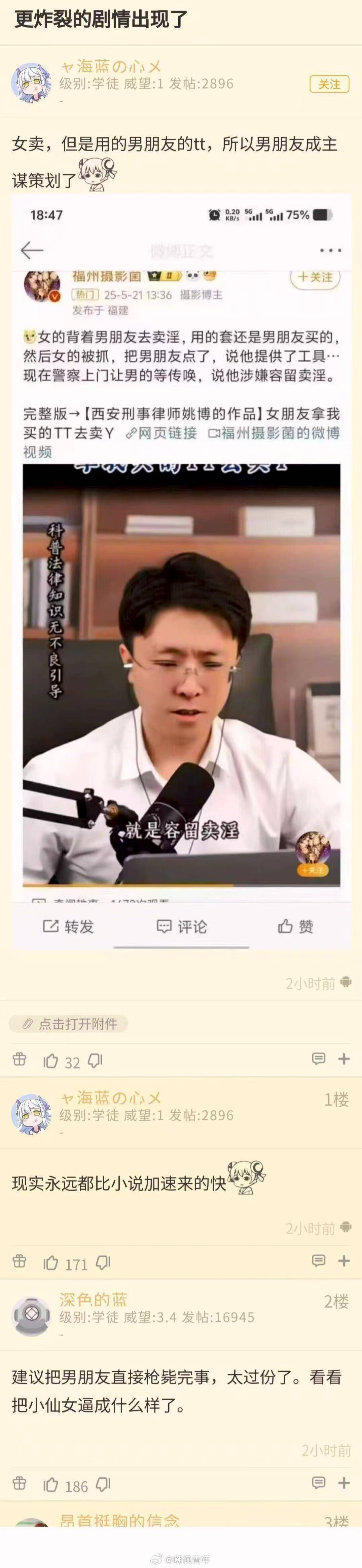 因为对象出去卖被抓了