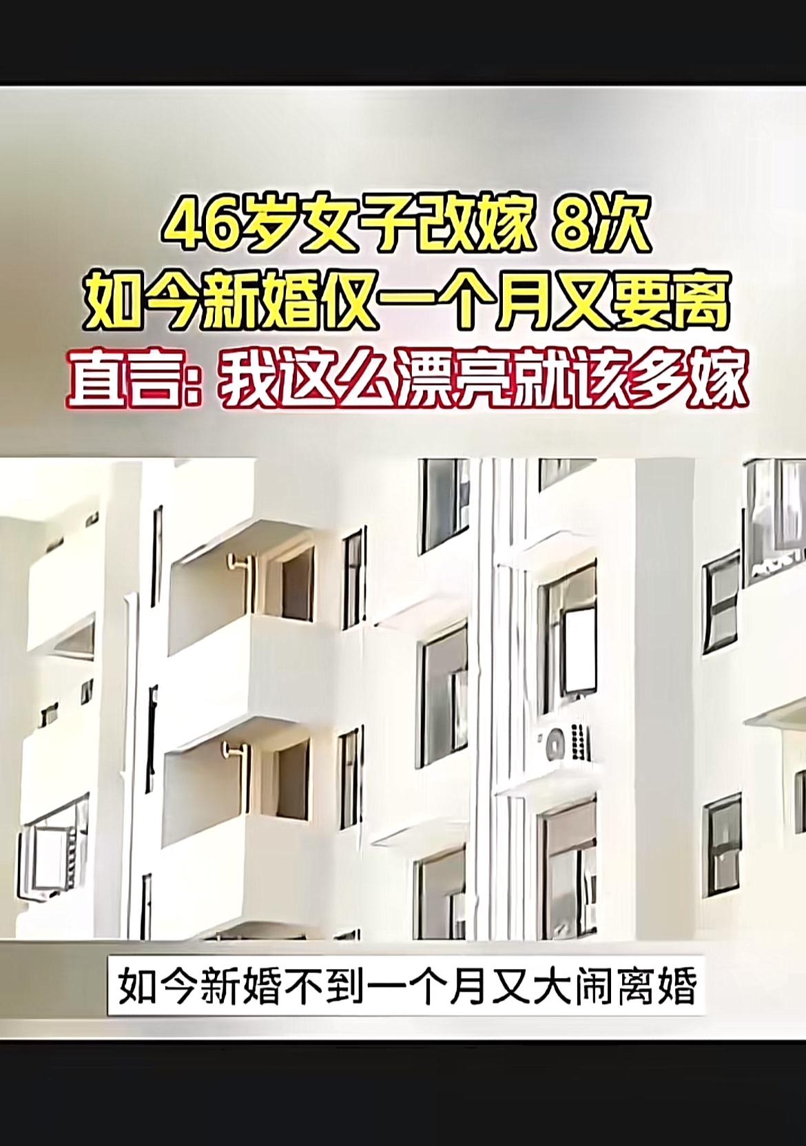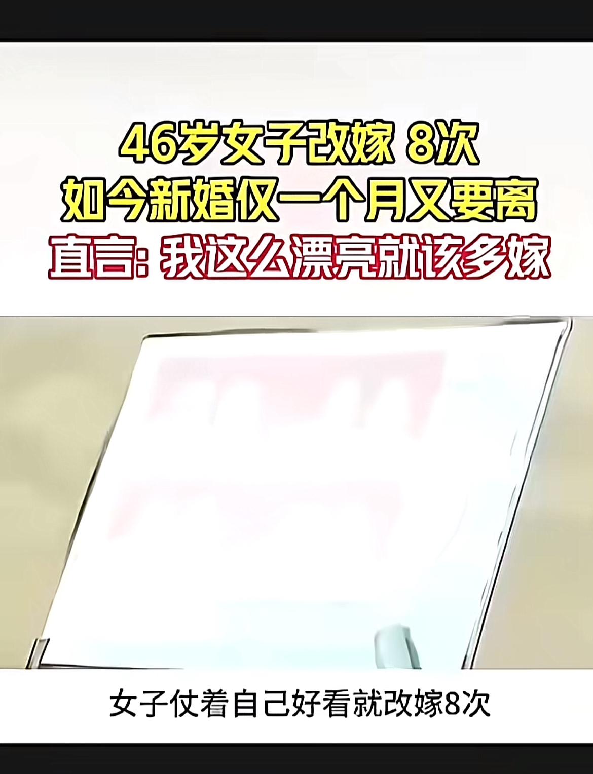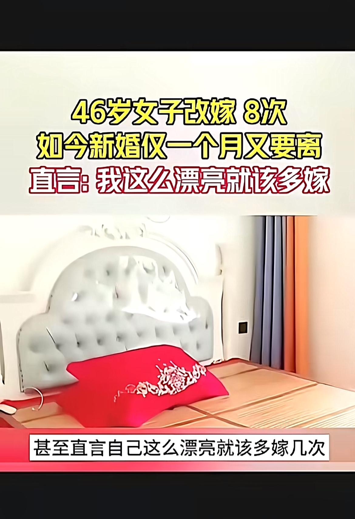 46岁女子改嫁8次,还直言“我这么漂亮就该多嫁”,这事儿可真是够抓眼球的。一个月前刚八婚,现在又想离,关键她丈夫还是头婚,这落差感绝了。有人觉得她太轻浮,频繁再婚伤人;也有人说追求幸福没错。 想起36岁的莫金玉,也是改嫁多次,婚后丈夫变懒,婆婆刁难,她的遭遇让人同情。但这位46岁女子,仗着漂亮就把婚姻当儿戏,实在让人难以苟同。婚姻不是游戏,还是得慎重对待,不能只图自己开心,不然伤害的可不止一个人。