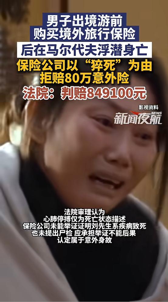 “玩不起?”北京,一男子出境旅游前,买了份境外旅行保险,不料在旅行期间不幸身亡,死因是“心跳呼吸骤停”,可家属理赔时,保险公司觉得男子死因不符合意外伤害,所以只愿意赔10万元,但家属不同意,将保险公司告上了法庭,法院这样判! 出门旅游买份保险,本来是图个安心,可北京的刘先生,却因为一份境外旅行保险,让家人在失去他之后,又添了一肚子委屈。 刘先生本来打算带着家人去马尔代夫好好玩几天,出发前,他特意花心思挑了一份境外旅行保险,怕的就是旅途中出意外,连累家人。 这份保险包含80万的意外身故保障,还有10万的急性病身故保障。 刘先生想着万一真出点事,这笔钱能让妻子、父母和女儿的日子好过一点,所以受益人直接填了这几位最亲近的人。 谁能想到,这一份初衷是保障的保险,后来却成了家属和保险公司扯皮的导火索。 到了马尔代夫之后,刘先生就按计划去体验浮潜,一开始还好好的,没成想没一会儿就出了意外,等身边的人发现他不对劲的时候,他已经没了呼吸。 周围的人赶紧帮忙抢救,可不管怎么努力,还是没能把刘先生救回来,一场开开心心的旅行,瞬间变成了天人永隔的悲剧。 家属强忍着悲痛,在当地处理完刘先生的后事,随后就带着当地官方出具的死亡证明,去保险公司申请理赔,证明上写得很清楚,刘先生的直接死因为“心跳呼吸骤停”。 家属想要按照保险合同,拿到80万的意外身故赔偿金,再让保险公司承担49100元的遗体送返丧葬费,可保险公司的态度,却让家属们彻底寒了心。 他们连像样的调查都没做,就一口断定刘先生是“猝死”,说是自身疾病引起的,不属于意外,所以不能赔80万,只能按急性病的标准,赔10万块钱。 家属们怎么也不能接受这个说法,好好的人在浮潜时出事,怎么就成了自身疾病?保险公司既拿不出证据证明刘先生有潜在疾病,也没提出要做尸检查明真正死因,就这么随便拒绝理赔。 家属们找保险公司协商了好几次,每次都被对方以同样的理由拒绝,到最后,实在没办法,只能拿起法律武器,把保险公司告上了法庭,只求能讨个公道。 一审法院接手这个案子后,查得很仔细,重点就看两个点,刘先生的死算不算意外,保险公司的拒赔理由站不站得住脚。 法院明确说了,“心跳呼吸骤停”是人去世时的状态,不是具体的病因,不能凭这一句话就认定是疾病导致的。 而保险公司一口咬定是急性病,却拿不出任何有力的证据,连尸检都没申请,按照法律规定,这种情况下,就得由保险公司承担举证不能的后果。 再加上刘先生是在浮潜过程中突然出事,完全符合保险合同里“意外身故”的定义,所以一审法院判决,保险公司必须赔80万的意外身故金,再加上49100元的丧葬费,一共849100元。 保险公司不服这个判决,很快就提起了上诉,觉得自己拒赔没错,不应该承担这么高的赔偿。 可二审法院审理之后,还是维持了原判,认为一审判决的事实清楚,证据也足够,适用法律也没毛病,等于彻底驳回了保险公司的上诉。 这个结果,虽然不能让刘先生活过来,不能抚平家属们的伤痛,但至少在经济上给了他们一点补偿,也让不讲理的保险公司受到了应有的惩处。 其实现在很多人出门旅游,都会买一份旅行保险,图的就是个踏实,可有些保险公司,收钱的时候特别积极,说得比唱的还好听,一旦真要赔钱,就开始找各种借口推诿。 就像这次的事,保险公司连证据都没有,就随便给刘先生的死定性为“猝死”,本质上就是不想履行赔付义务,这种做法,只会让消费者越来越不信任保险行业。 网友们看到这件事之后,也都觉得法院判得对,大家都说,既然保险公司拿不出证据证明刘先生的死不是意外,就必须按合同赔钱,没什么好说的。 保险的意义就是保障,消费者花了钱,就是买一份安心,一旦出了意外,保险公司就该按约定赔付,别再玩那些“投保容易理赔难”的套路,不然最终失去的,只会是消费者的信任。