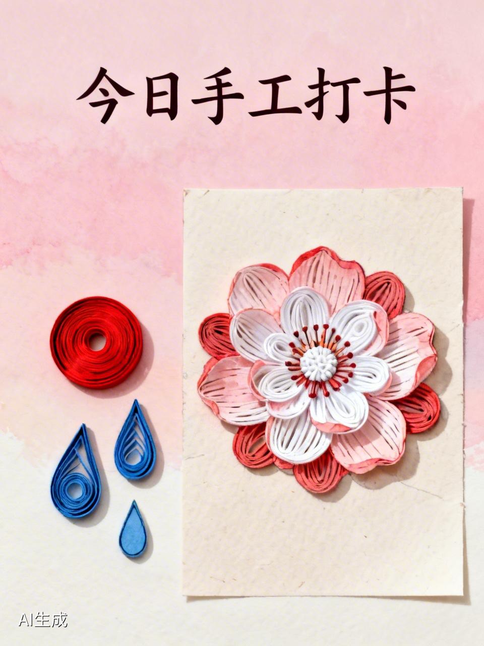 今日手工打卡!今天我做了个超有趣的衍纸画。我先准备了各种颜色的衍纸条,红的像火,蓝的似海。把纸条卷起来,用镊子捏出不同形状,圆形、水滴形、泪滴形,就像变魔术一样。然后在卡纸上精心布局,用白乳胶一点点粘上去。我做的是一朵盛开的花,花瓣层层叠叠,花蕊栩栩如生。整个过程特别治愈,沉浸其中,时间都过得飞快。看着自己亲手完成的作品,满满的成就感。以后我要继续解锁更多手工玩法,大家也可以试试呀!