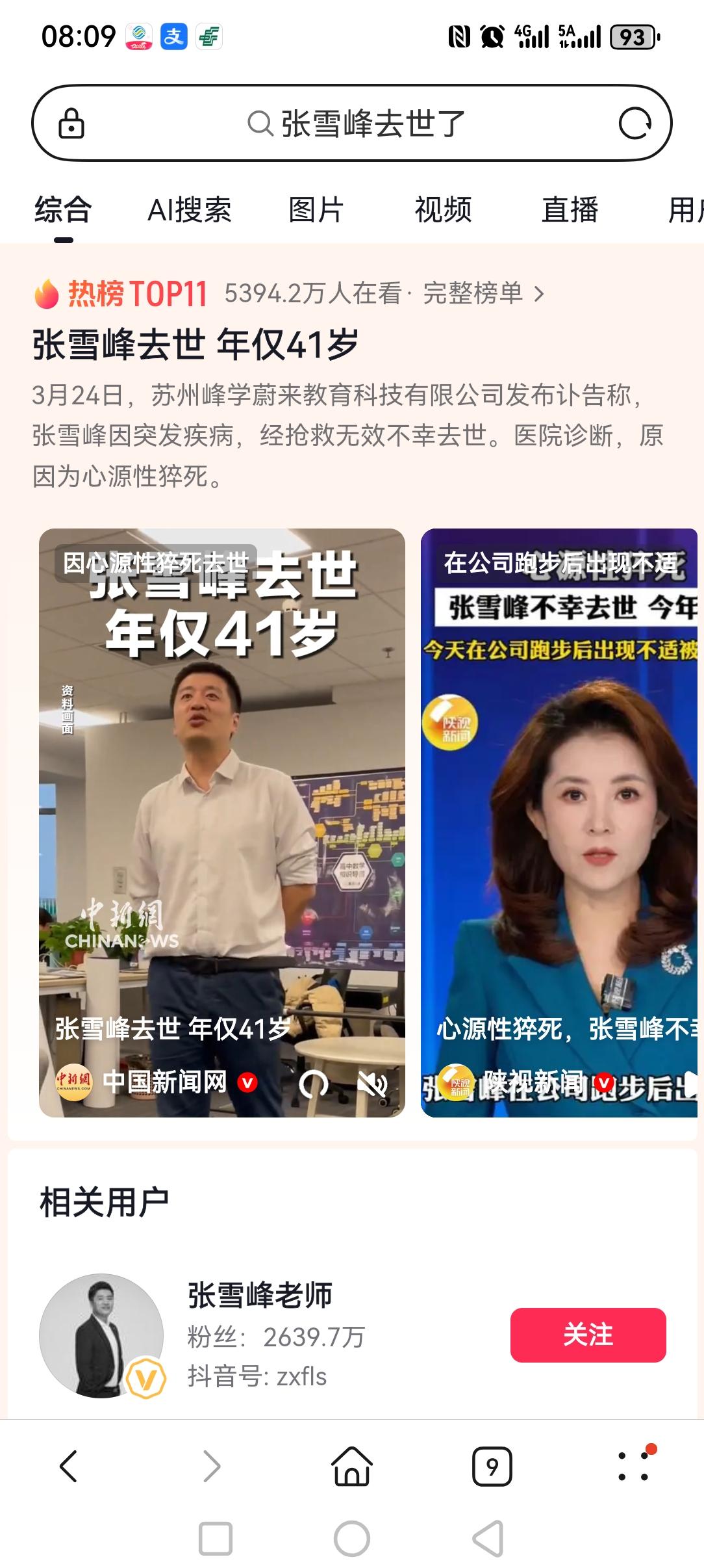 一句话告别张雪峰猝死前1小时身体会发出哪些预警 心源性猝死如何急救 张雪峰曾谈死亡:希望成一代人记忆 张雪峰曾谈死亡:希望成一代人记忆 你会过度操心孩子的事吗 医学专家64岁开始跑步十年上百次全马 早晨惊闻君去世,惊心涕泪湿衣裳!为人指点考迷津,英年早逝太可惜!话说好人有好报,生活之中实相反。好人好事给焉焉了,杀人放火翘尖尖。