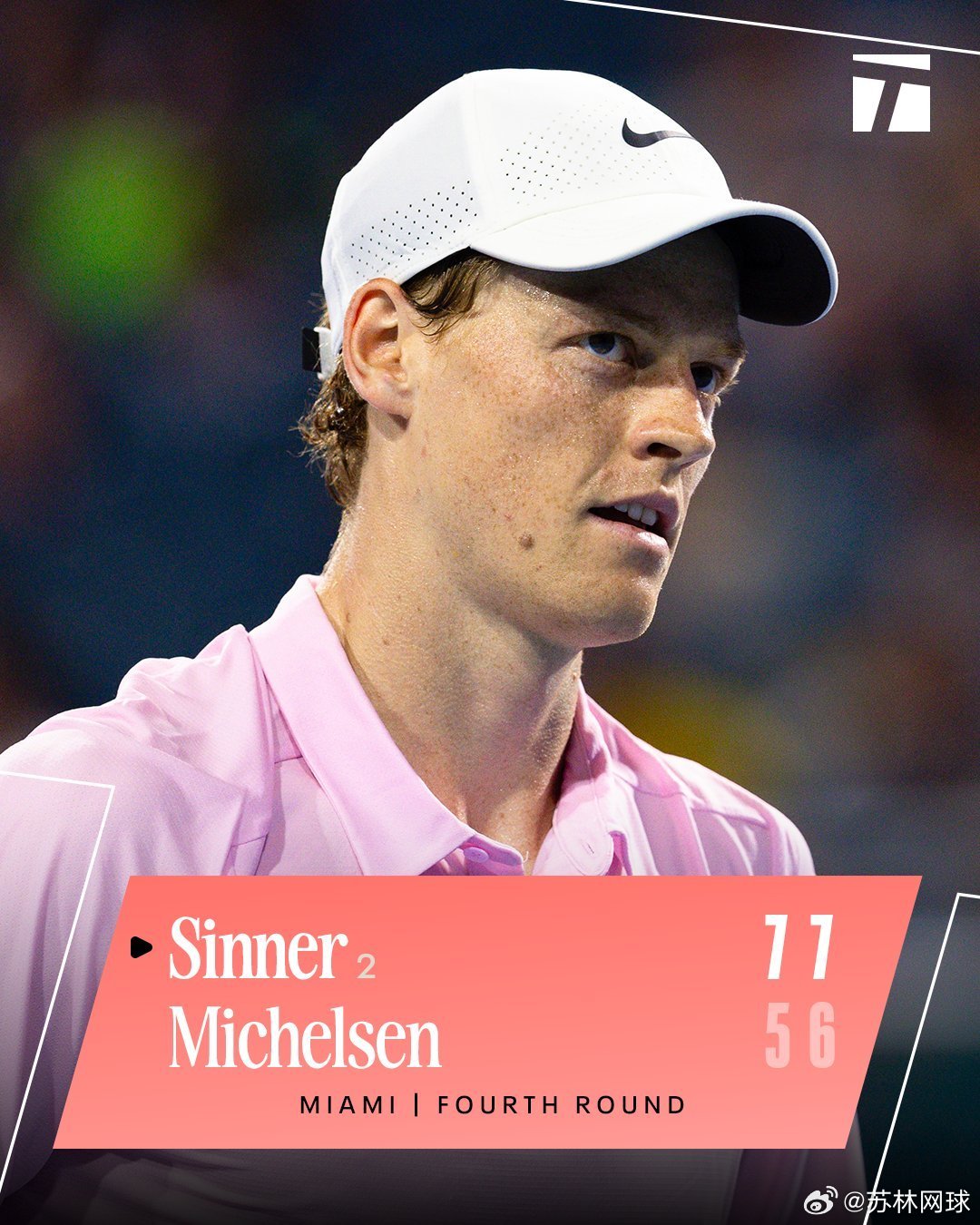 迈阿密女单1/4决赛🇨🇿穆霍娃7-5/7-6姆博科🇨🇦男单八强战🇨🇿莱赫卡6-4/6-7/6-2弗里茨🇺🇸🇺🇸保罗6-1/6-3安切维里🇦🇷🇮🇹辛纳7-5/7-6米克尔森🇺🇸辛纳9连胜。网坛风云ATP辛纳2比0米克尔森