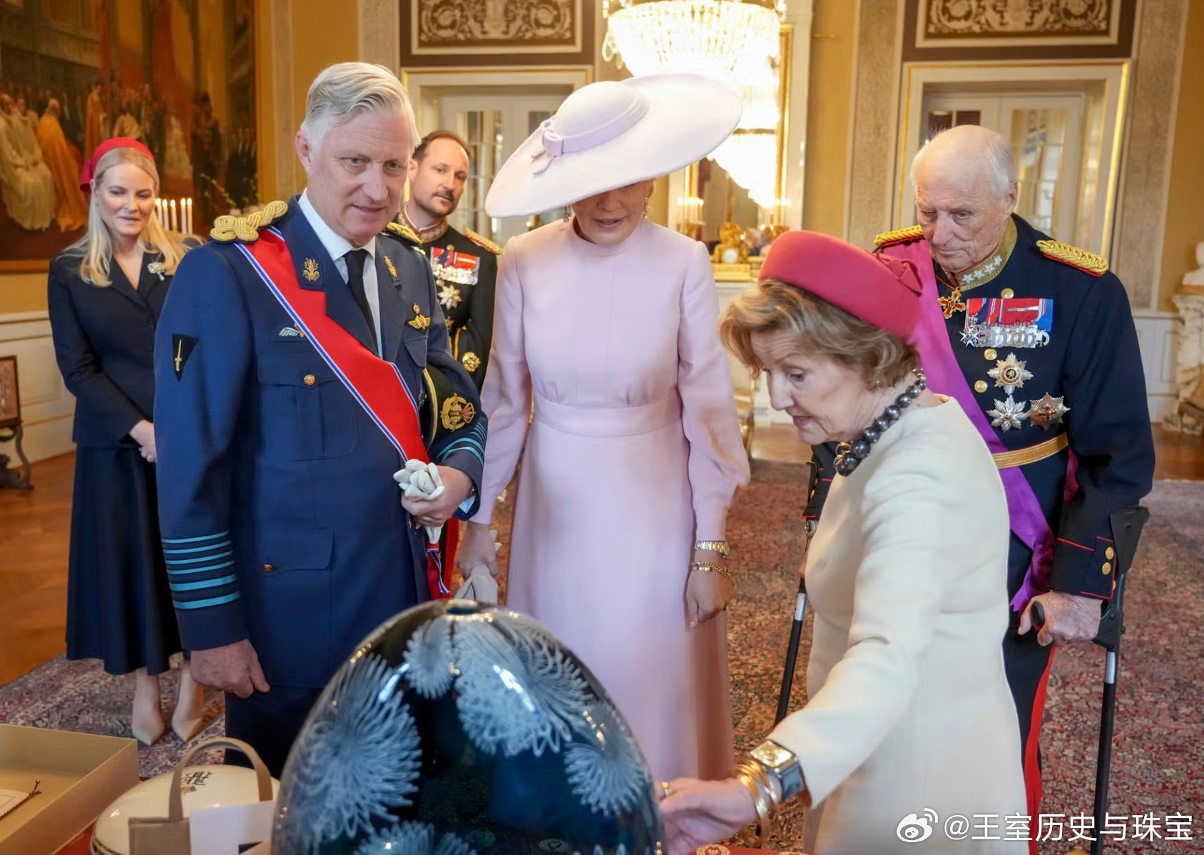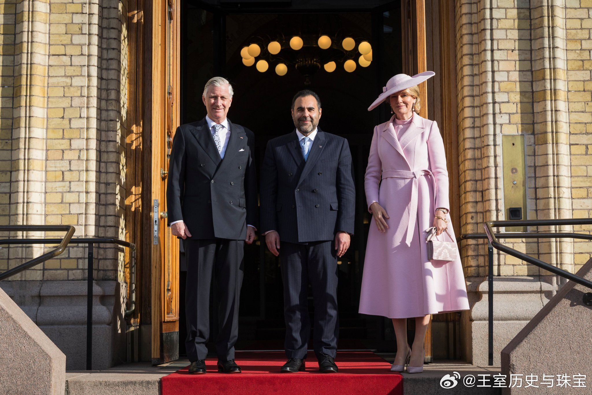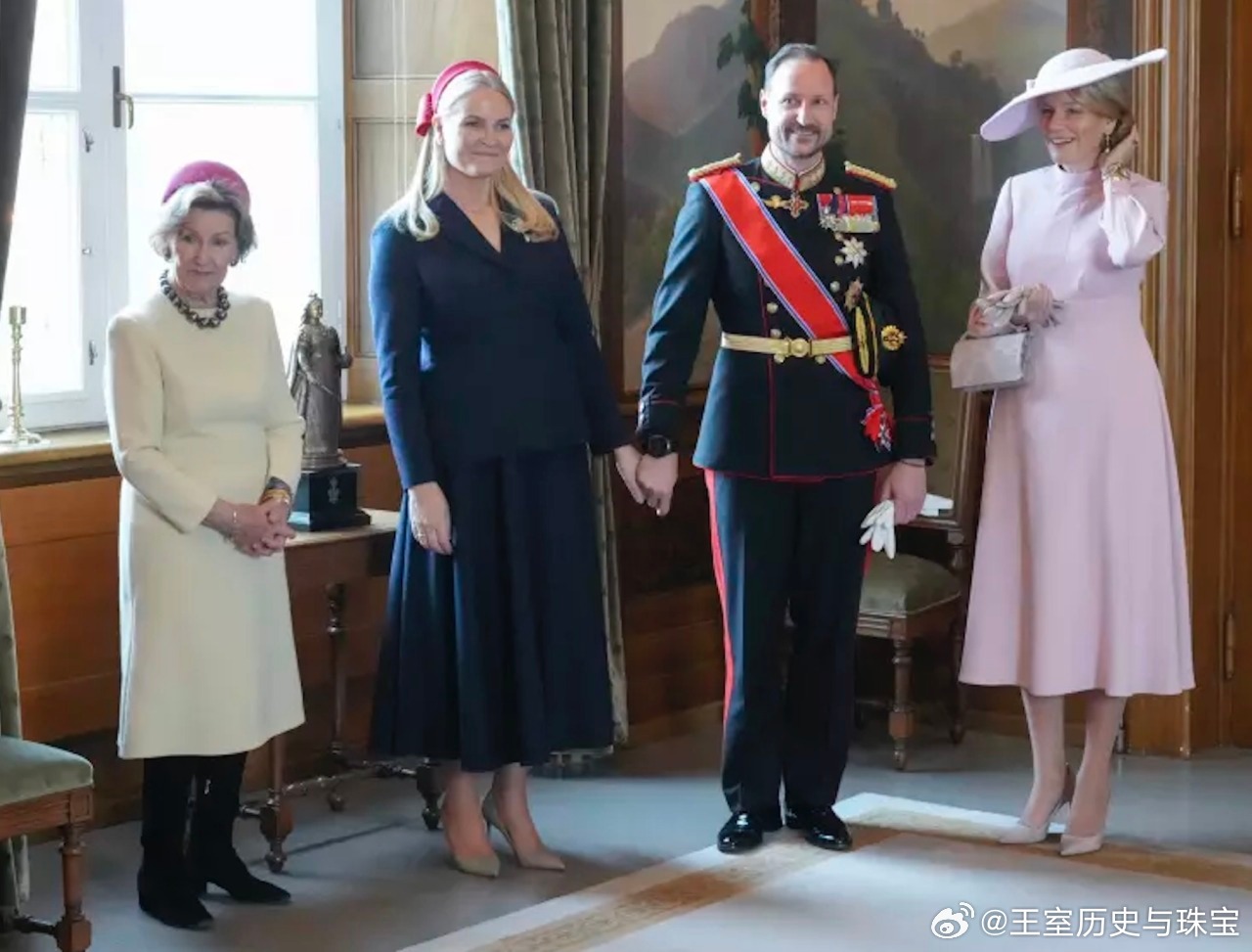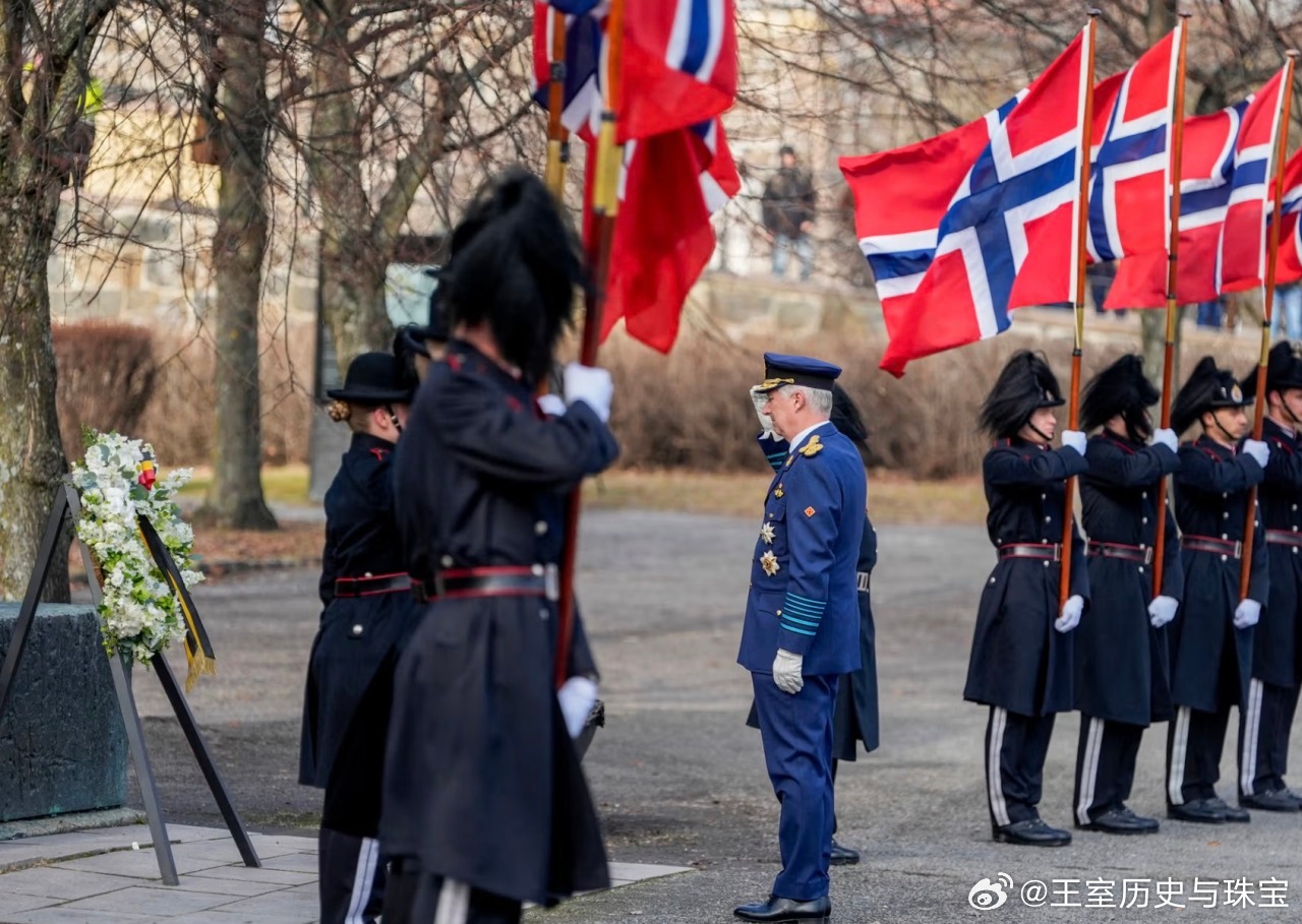 新闻 2026.3.24 比利时国事访问挪威Day 1,日间补图,在奥斯陆皇宫寒暄后前往阿克斯胡斯城堡敬献花圈,接着访问挪威议会和参观戈尔斯塔夫教堂,玛蒂尔德和梅特的裙装来自Dior。