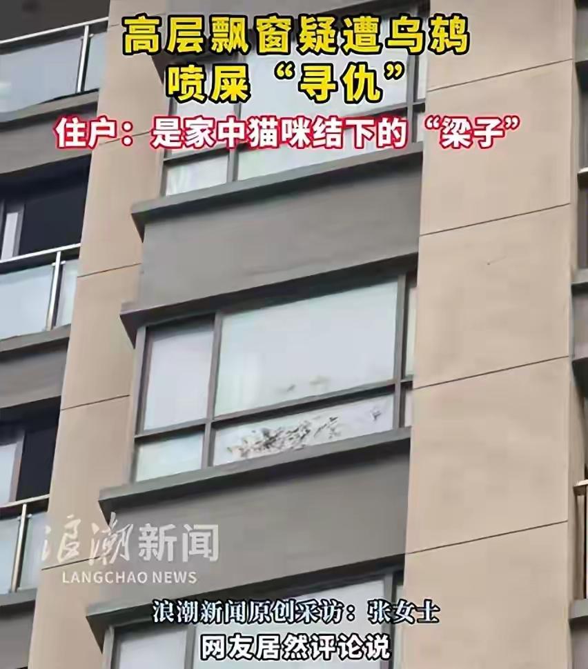 猫咪怎么能惹下这么大的祸:高层飘窗惊现“血迹”喷射物,原是猫咪和乌鸫结下梁子~ 浙江宁波张女士家的高层飘窗上,总是出现一道道、一滩滩像血迹一样的喷射物,而且是逐日增加的。她百思不得其解,终于有一天“破案”了。 起因是张女士发现自家飘窗外这段时间总是脏兮兮的,经常出现各种像血迹一样的喷射物,还夹杂着白色、灰色物,一天比一天多。所以,她在家的时候就会格外地观察窗外,想看看到底是怎么一回事儿。 这天,她发现自家的猫突然就跑到窗台上上蹿下跳,仔细一看外边有一只黑色的鸟和猫隔窗干架,黑鸟开始往玻璃上喷射排泄物。 这下子破案了,原来窗外那些喷射物是鸟粪啊! 张女士特意查了资料,黑色的鸟疑似乌鸫鸟,这种鸟的“报复心”还挺强的呢,估计它隔空和猫干架,来寻仇报复了。 这下真相大白,张女士看着满窗的“污渍”真是哭笑不得。自家猫咪还天天蹲在窗边耀武扬威,一副不肯认输的样子,窗外的乌鸫也毫不示弱,认准了这扇窗户天天来“反击”。原本干净的飘窗被搅得一塌糊涂,想擦都没法下手,只能任由这对“冤家”每天隔空对峙,上演一出又一出啼笑皆非的闹剧。 哎,自己养的猫惹不起,外边的鸟更惹不起。只能等它们签下“停战协议”之后,在找人来清理鸟粪了!