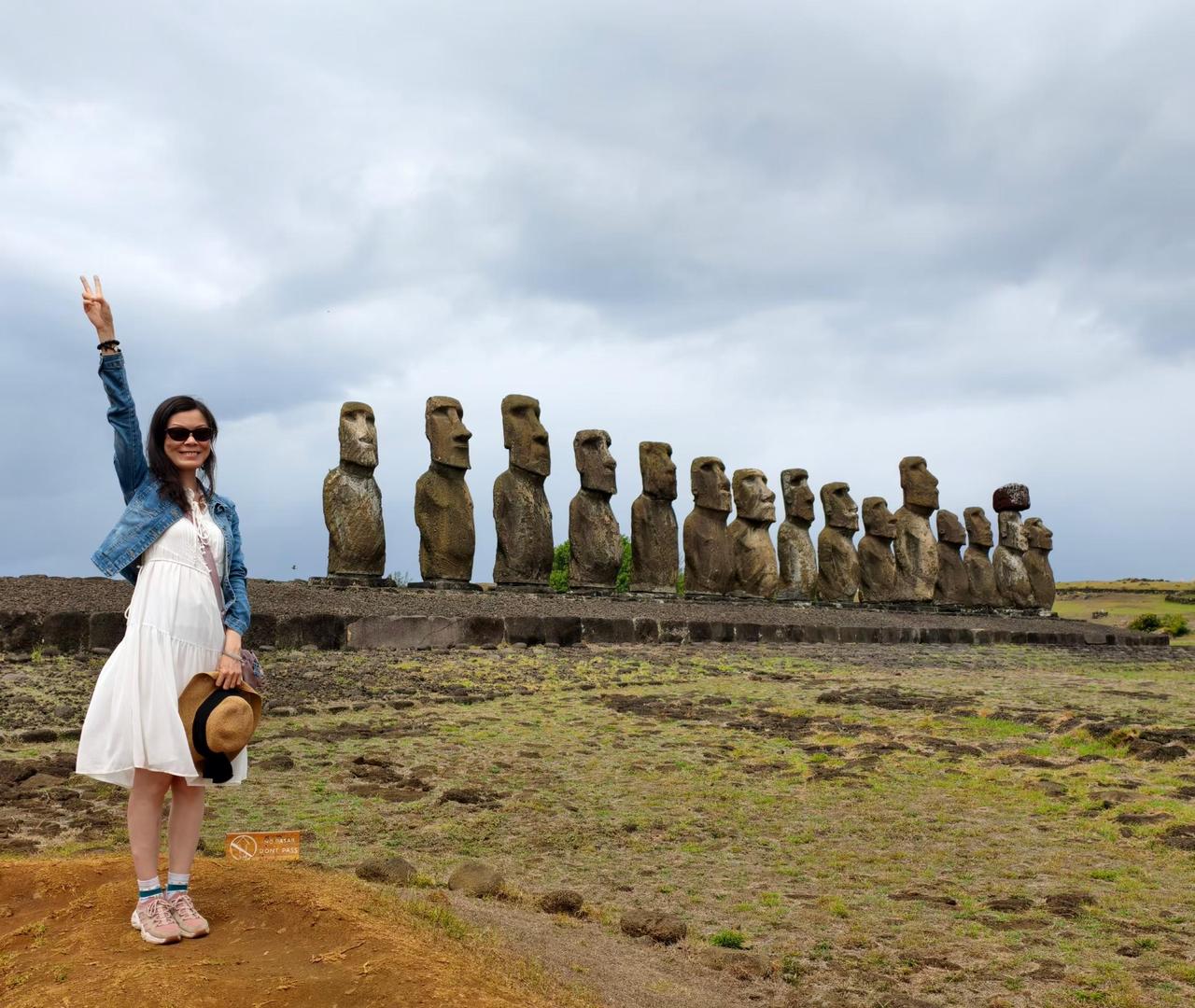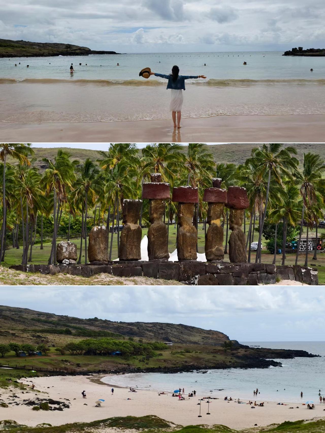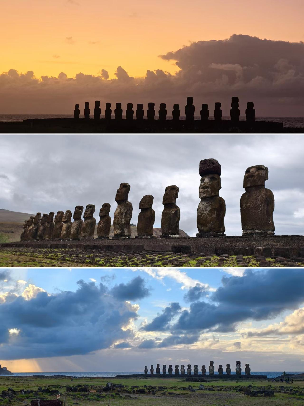 复活节岛,当地原住民称之为“世界的肚脐”,887尊巨大的摩艾石像,让这座孤悬在南太平洋上的小岛,成了地球上最独一无二的存在。 不说从智利本土飞也要五个小时,还每天只有一班飞机,且在岛上租车或打车都与常用平台不互通。而要看那几个经典景点不光要买每人95000比索(合人民币717元)的门票,还必须由当地有证的导游带着去,当然导游费是另付。 所以不光是各方面价格高,还可能没机票或超售导致无法值机,以及没导游(据说很多预约好的导游也会放鸽子)。 我们幸运,临时找的导游,却赶上一位又漂亮又负责的小美女,把所有要去地方的介绍都打印了西、英、中三种语言,还配了很多发掘时的图片资料,路上还摘了许多野生番石榴给我们吃。价格原本没高过市场价,还因为早上的日出被云遮住而主动少收我们费用。 带着善意出发,总会在路上遇见同样温暖的人。感谢善良温柔的小美女,愿你前路坦荡,早日梦想成真✨